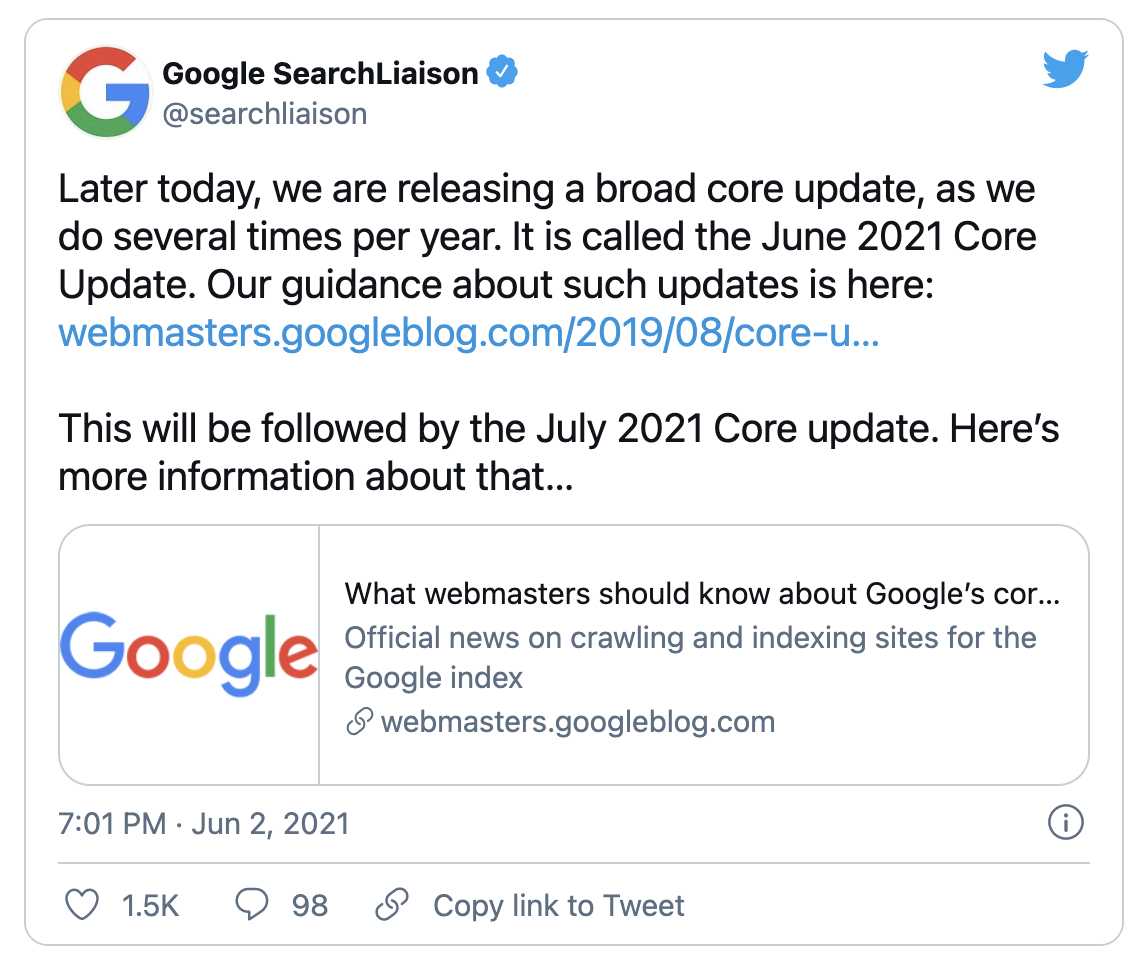 - Core Update julio 2021: La segunda parte de la actualización anterior. No existen detalles aún pero podemos dar por hecho que tendrá gran impacto.