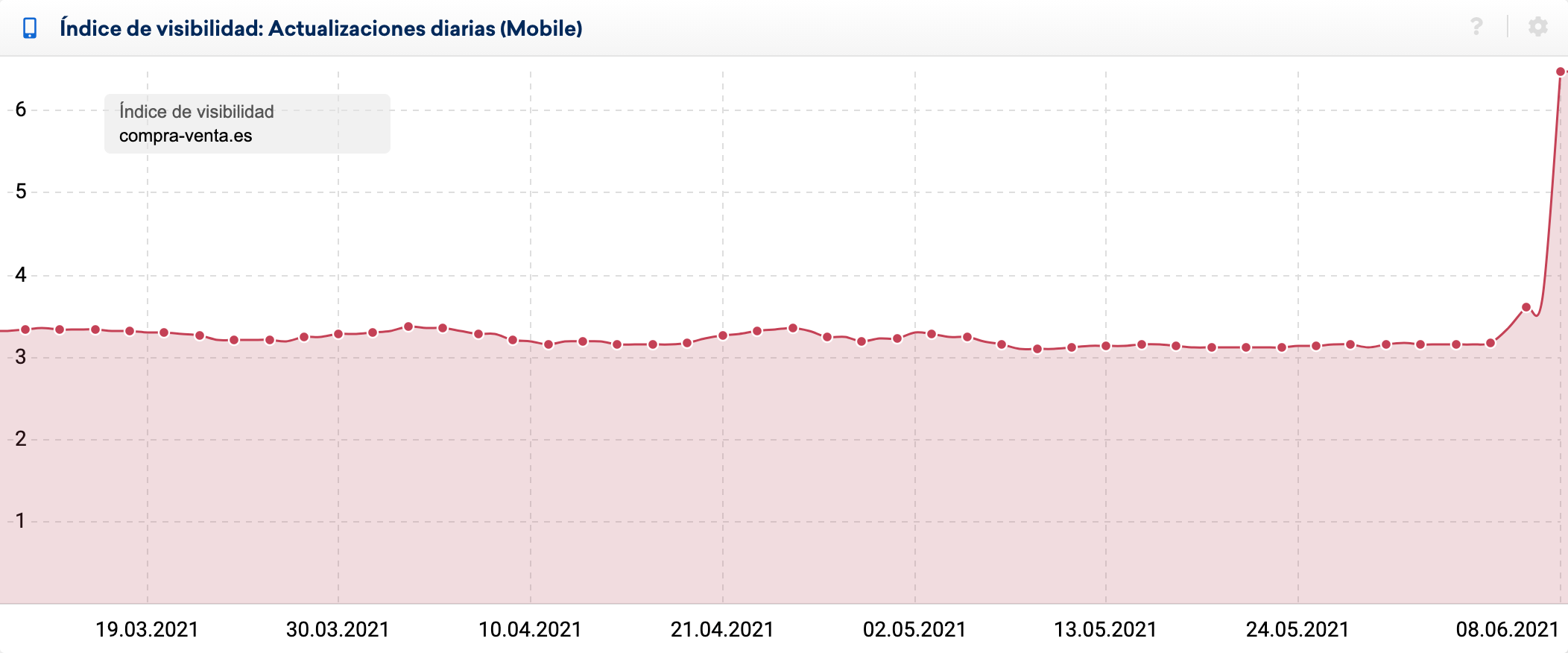 - La visibilidad diaria: puesto que no se sabe concretamente qué problemas solucionan estás actualizaciones y el hecho de que en pocos días se generan muchos cambios, es importante limitarlo observando los cambios diarios (https://www.sistrix.es/changelog/indice-de-visibilidad-diario-para-todos-los-paises/).