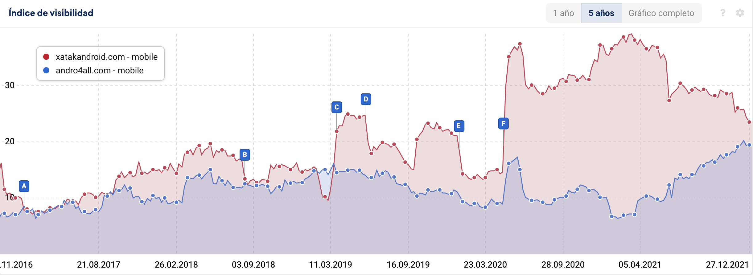 Proyecto del grupo Difoosion, Andro4all ha tenido un crecimiento porcentual del 96%, siguiendo la misma línea que el resto de proyectos de su red. Esto les acerca en visibilidad al líder del mercado, que no ha tenido un buen año.