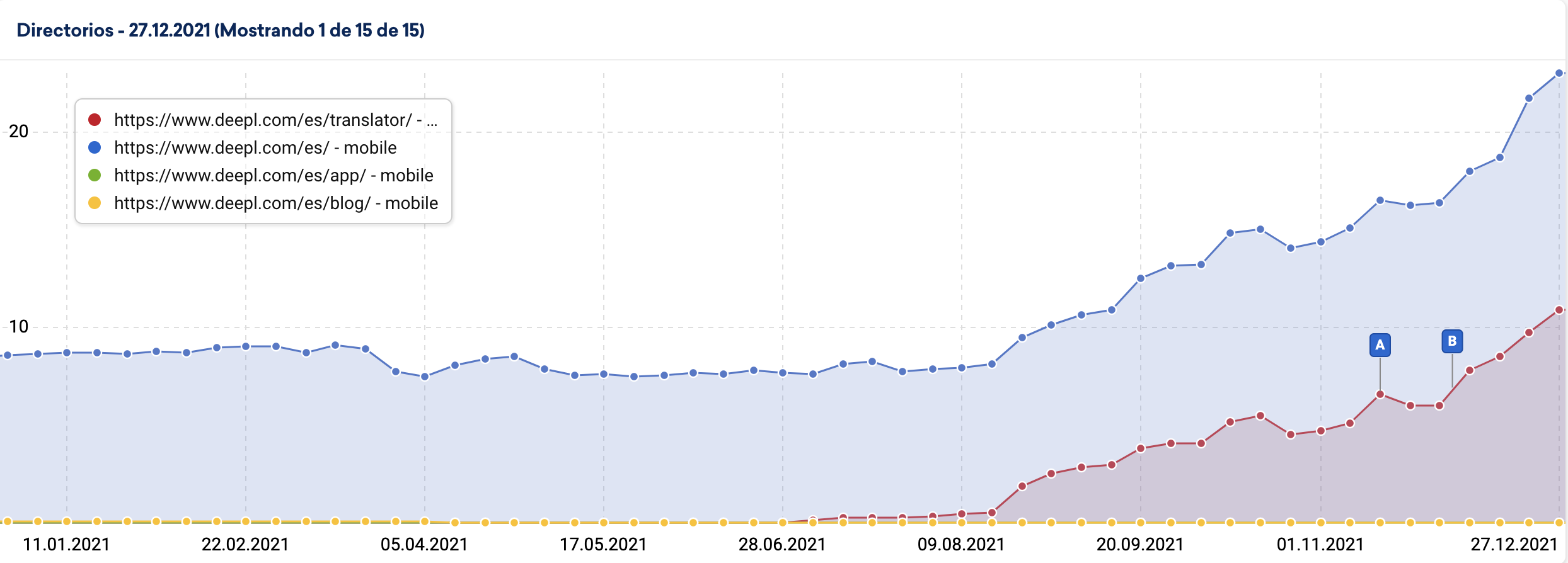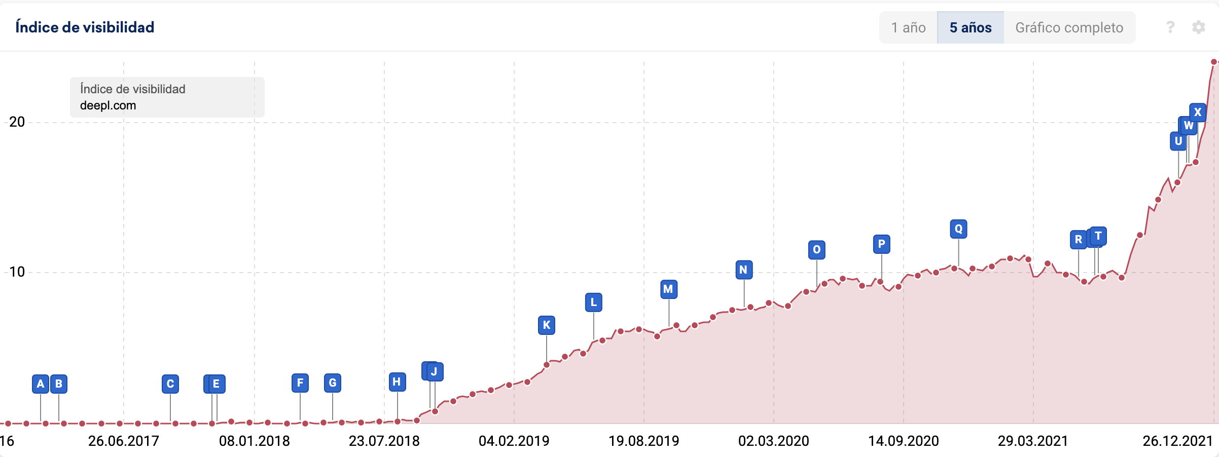 Dentro de los proyectos Thin encontramos al traductor DeepL, una buena alternativa a la herramienta de Google. Pues bien, el crecimiento del proyecto ha sido espectacular este año y lo más impresionante es que no corresponde con Core Updates, lo que ha despertado mi curiosidad y “cosquilleo” al más estilo Spiderman XD