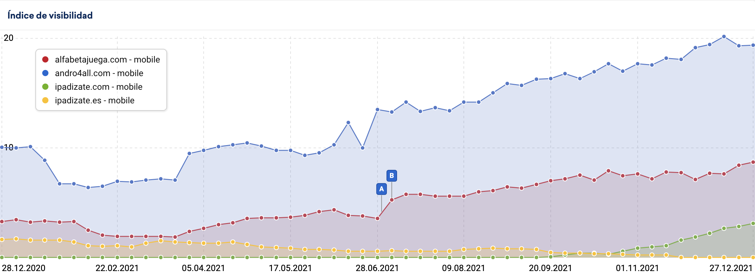 Todos ellos tuvieron un crecimiento en la actualización de junio/ julio 2021 y subida o corrección en el último Core Update de noviembre 2021.