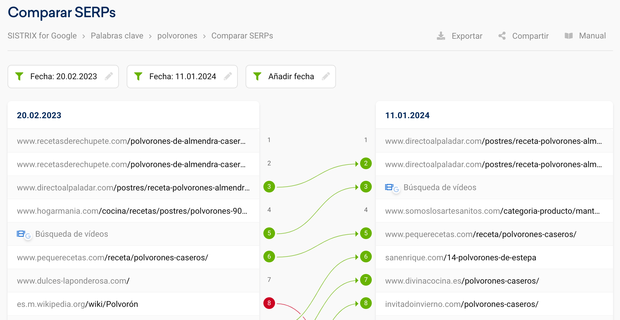Como ejemplo os dejo la desaparición de su landing de “polvorones” (posición 4).