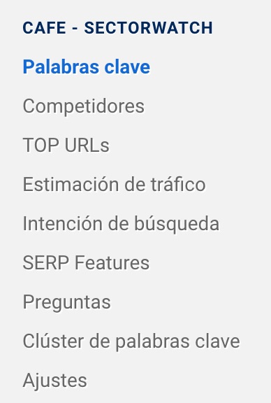Para analizar este sector, he creado una lista propia con palabras clave relacionadas con el café. Con esto, puedo desbloquear varias funcionalidades de SISTRIX que me parecen muy prácticas, como la sección de Clústers. Entre la propia lista inicial y esta funcionalidad, he podido rescatar algunas palabras clave que están creciendo en popularidad.