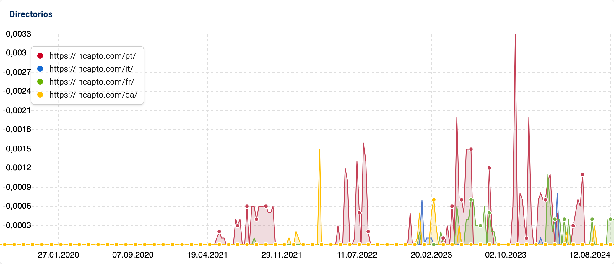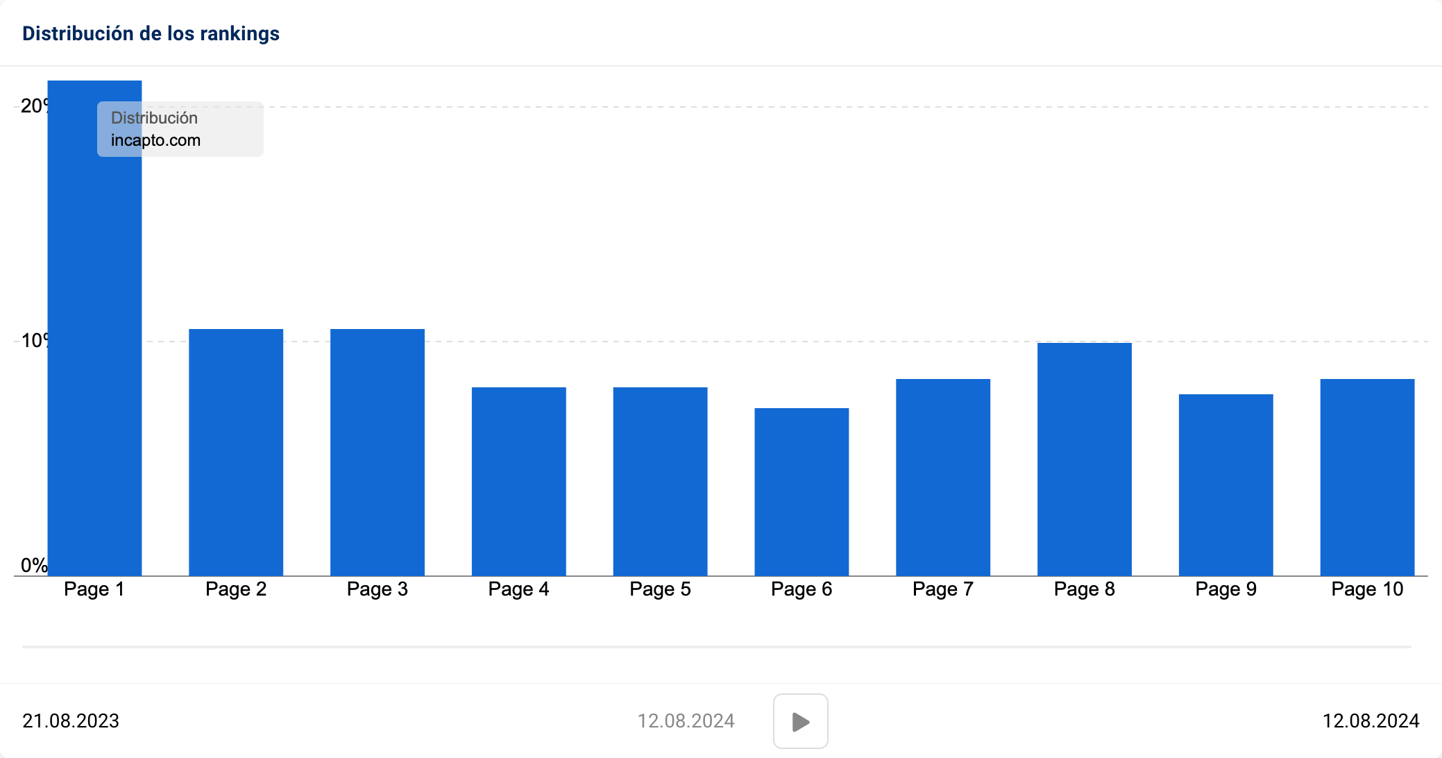 La evolución del proyecto en cuanto a visibilidad es constante y creciente. Es una de esas gráficas “sanas”, de las que cualquier SEO podría estar orgulloso/a.