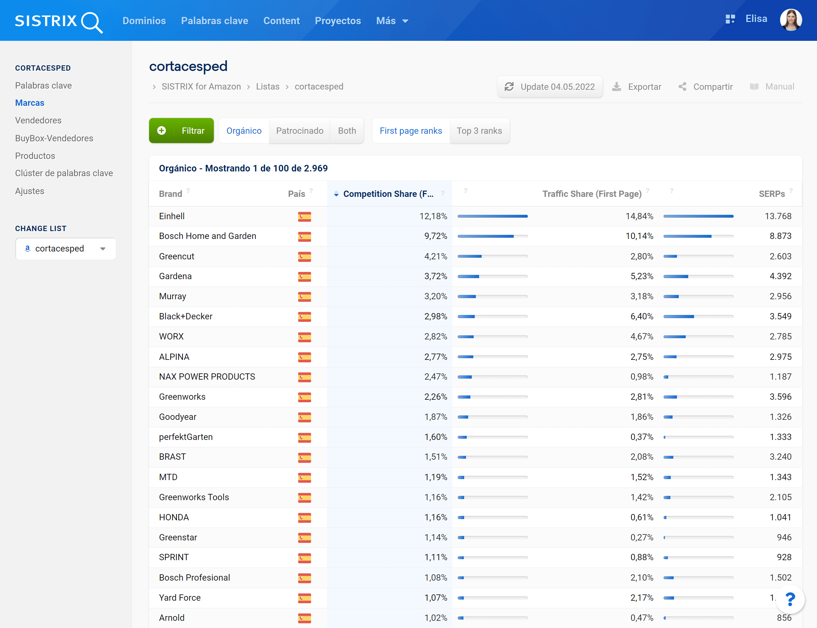 La funcionalidad «Listas» recientemente implementada en SISTRIX para Amazon te permite analizar en detalle los nichos autodefinidos. Identifica marcas y vendedores de éxito y, estructura las palabras clave por grupos.