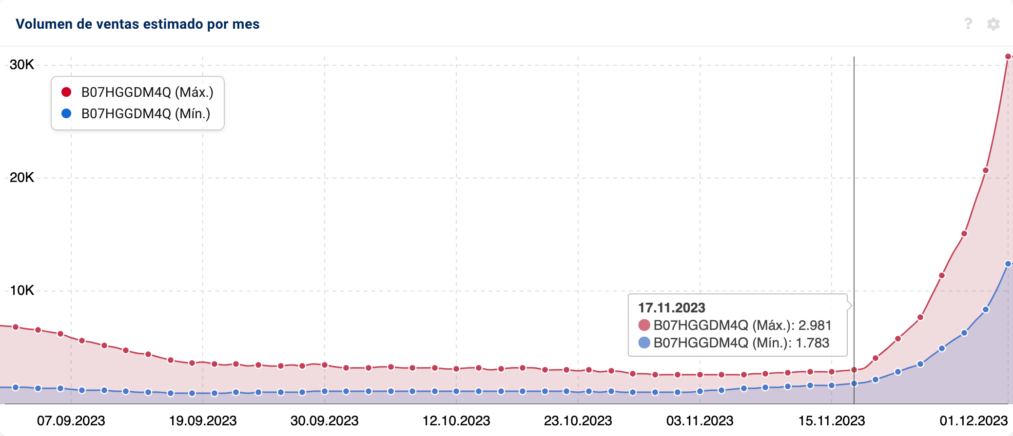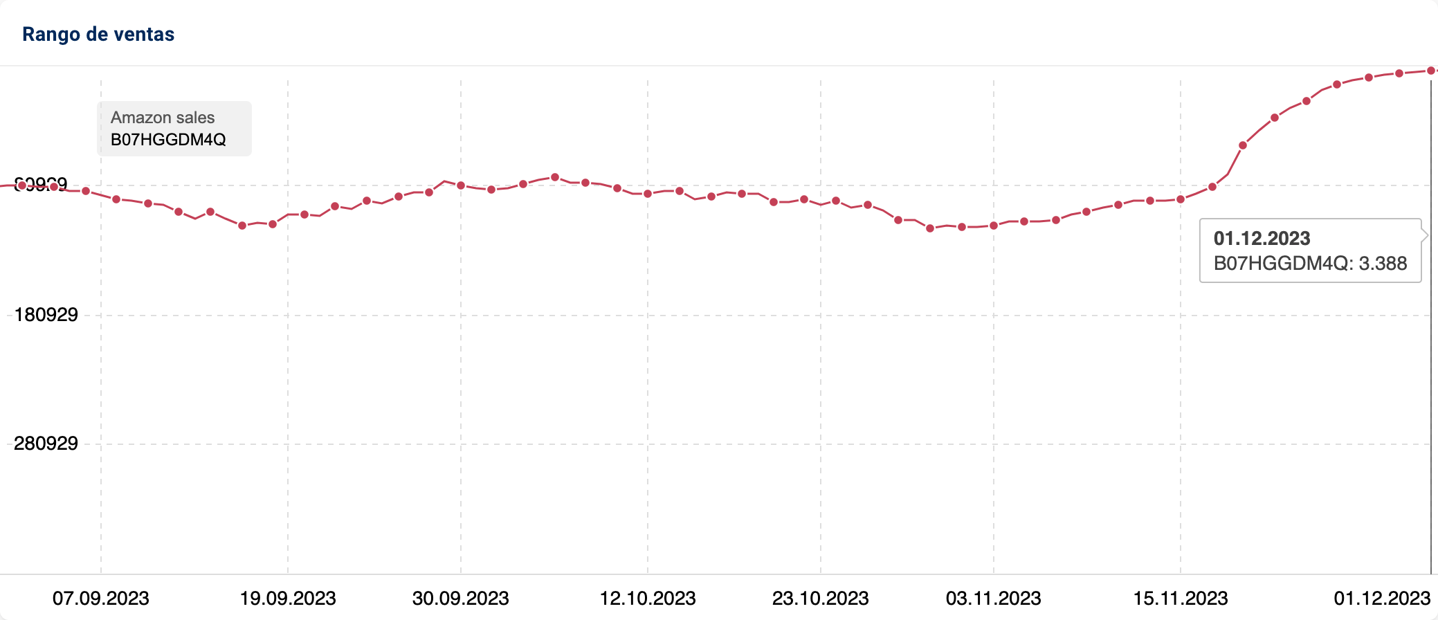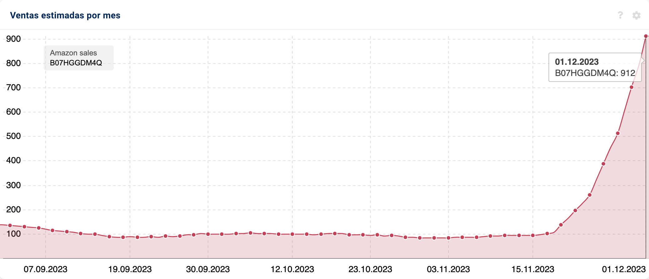 Para un producto como “Lego Harry Potter Collection – Nintendo Switch. Edition: Estándar” se puede ver, por ejemplo, que las cifras de ventas pasaron de 100 unidades a finales de septiembre a casi un poco mas de 900 productos vendidos el 1 de diciembre. Así que el período comercial navideño parece que ha comenzado.