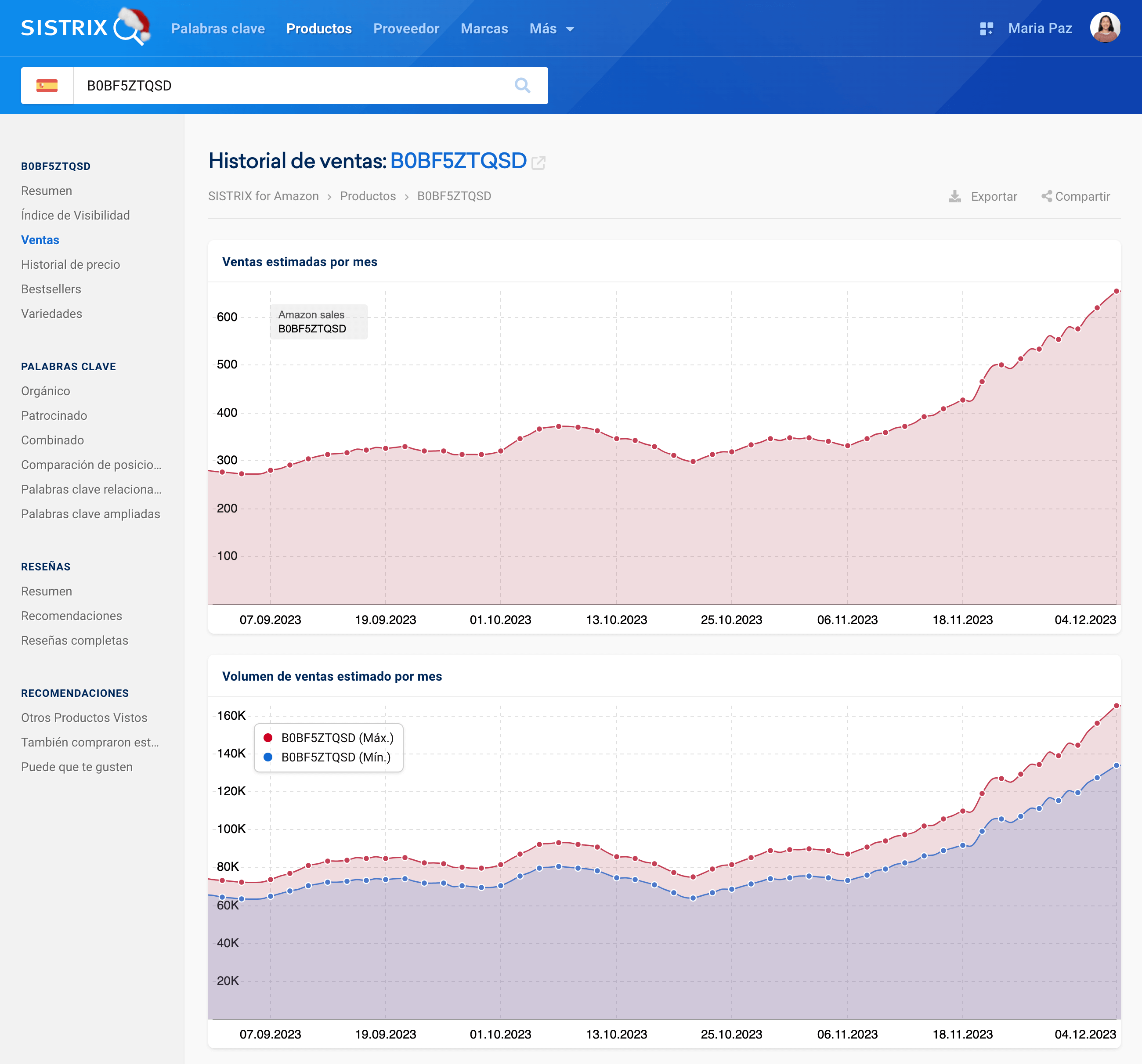 Además, siempre se suman las ventas de todas las variedades o versiones de un producto. Por ejemplo, diferentes variantes de color o tamaño.