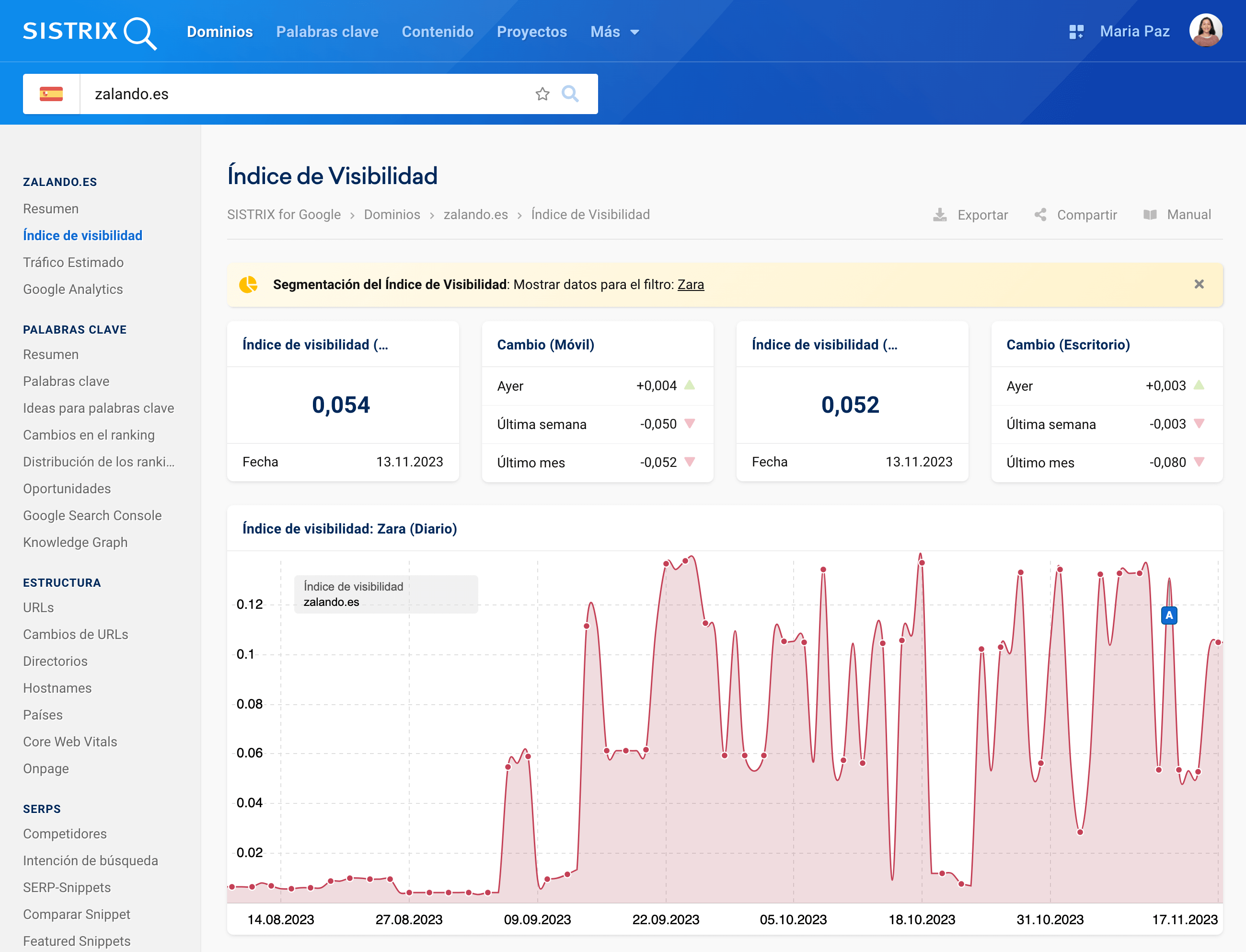 Esto significa que ahora puedes analizar específicamente apartados individuales de un dominio en términos de visibilidad.