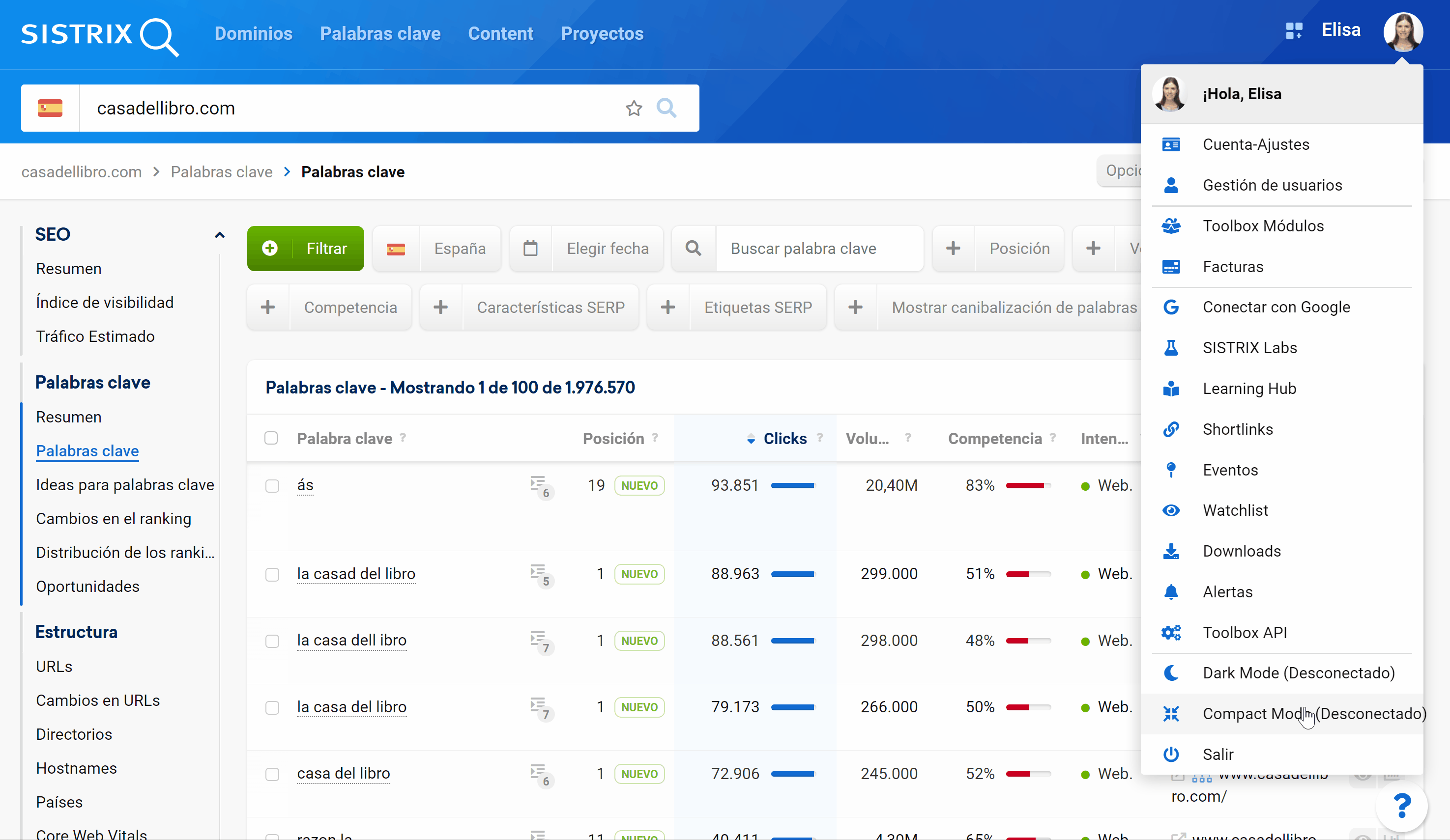 Las SERPs de Google son cada vez más complejas. Teniendo esto en cuenta, nosotros también mostramos cada vez más información en muchas de las tablas de SISTRIX. ¿Cuál es la intención de búsqueda? ¿Es un fragmento destacado? ¿Tiene enlaces del sitio?