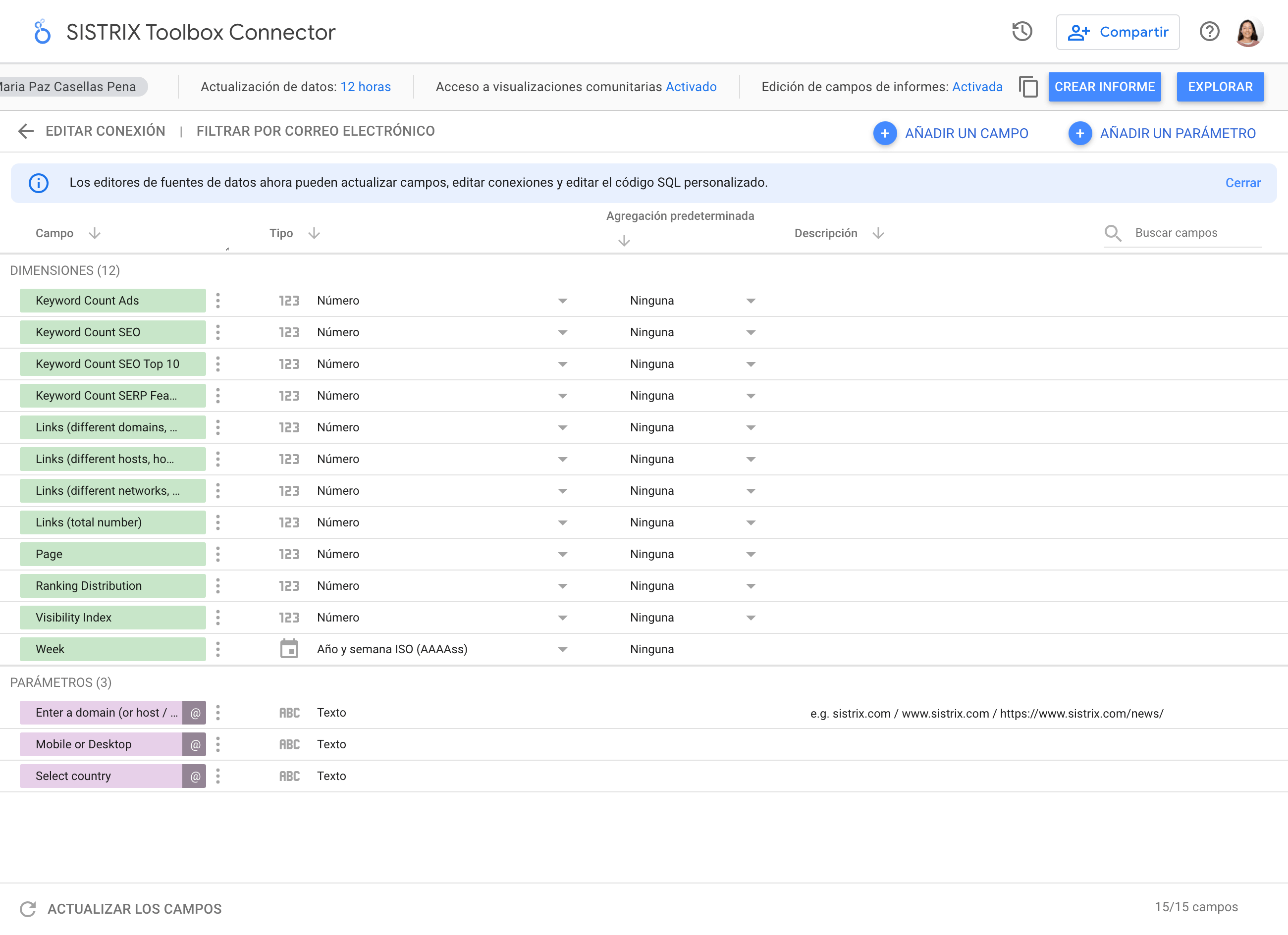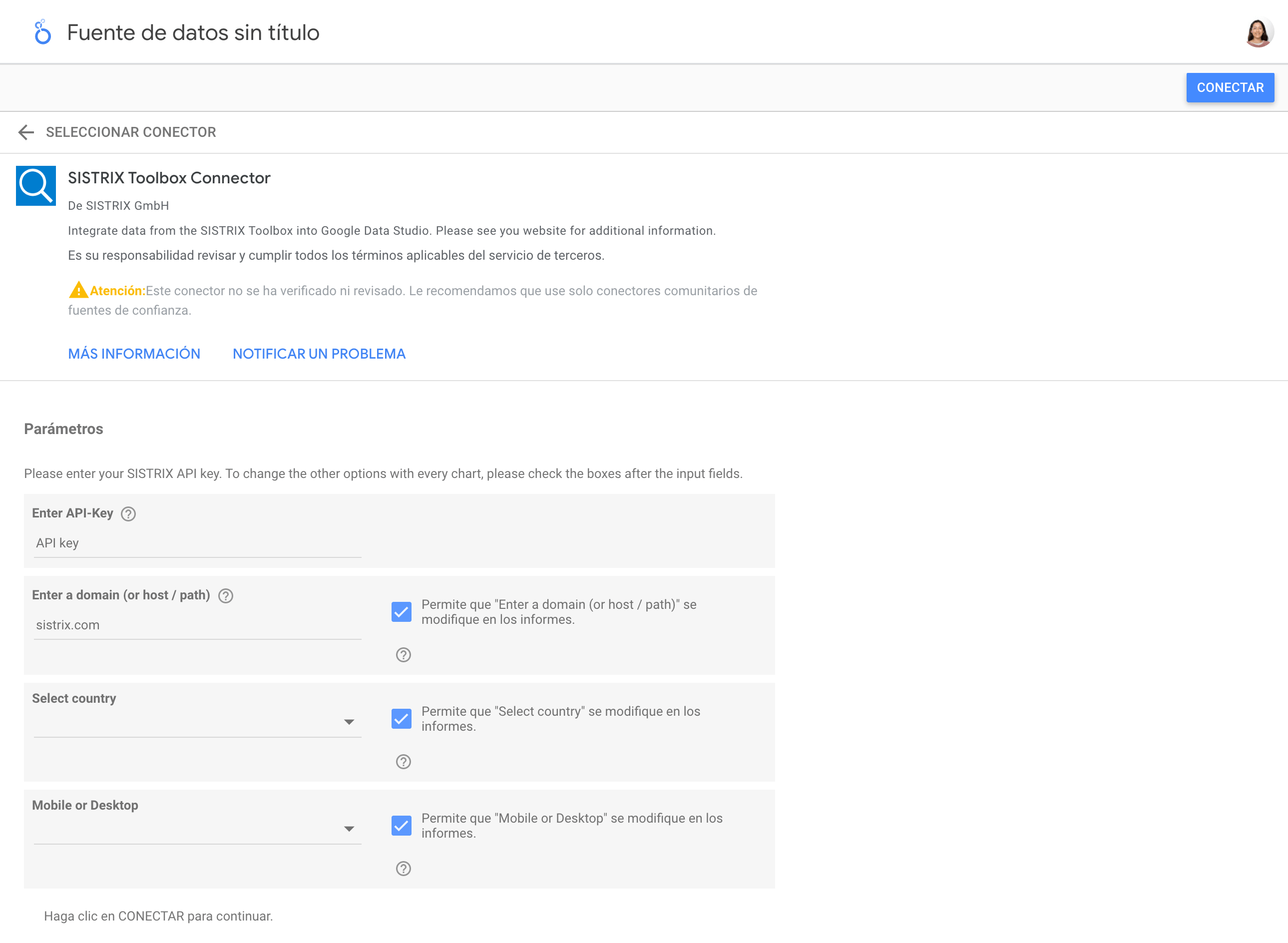 Para utilizar el conector Data Studio para los datos de la herramienta SISTRIX, haz clic en el siguiente enlace: