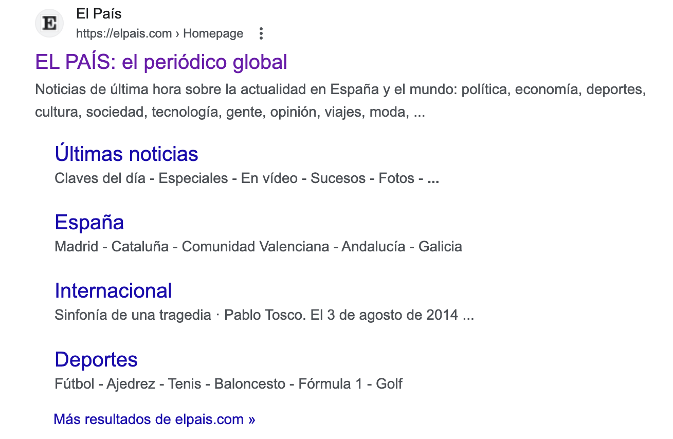 A veces se muestran hipervínculos en los Snippets que llevan a páginas del sitio web, ya sean grandes, como en el ejemplo siguiente, o más pequeños, sin descripciones.
