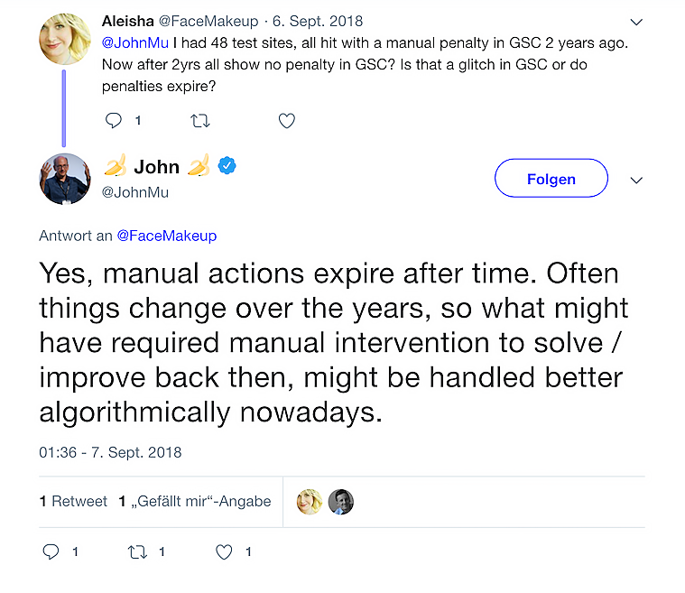 Si trabajamos cuidadosamente en las causas de la sanción manual, se puede solicitar a Google la llamada Reconsideration Request. Una solicitud de reconsideración es una solicitud para una nueva revisión manual del sitio web. Si se concede esta solicitud y la evaluación es positiva, una penalización manual puede ser levantada antes de tiempo.