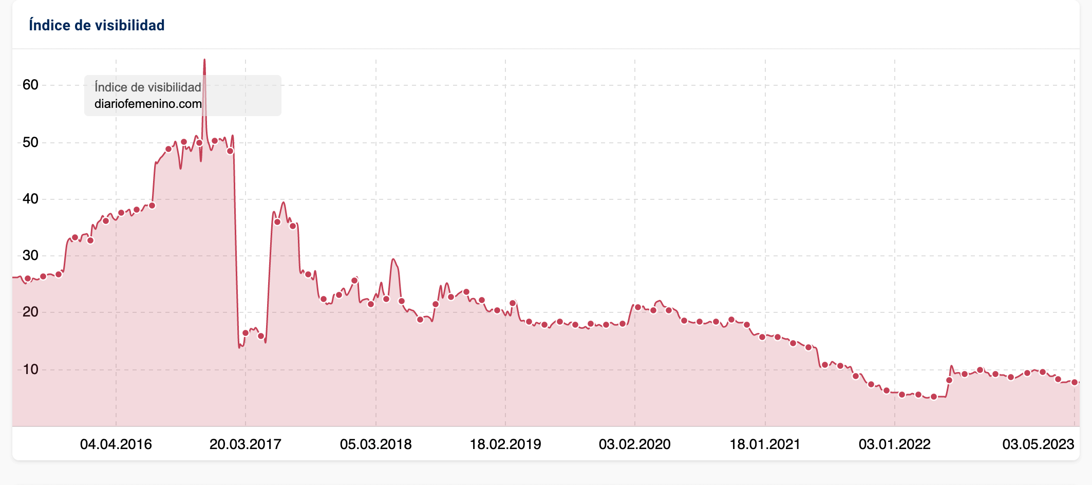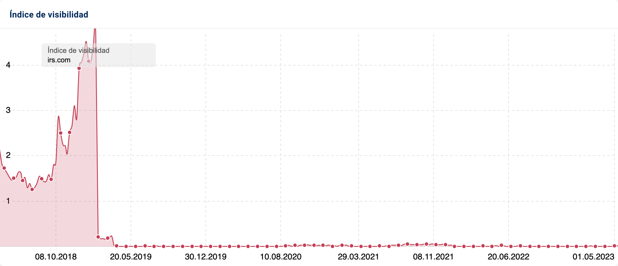 Cuando un sitio web es afectado por una penalización algorítmica, la visibilidad y la capacidad de encontrar el dominio afectado se reduce significativamente. La consecuencia suele ser una disminución continua y sostenida del Índice de Visibilidad SISTRIX.