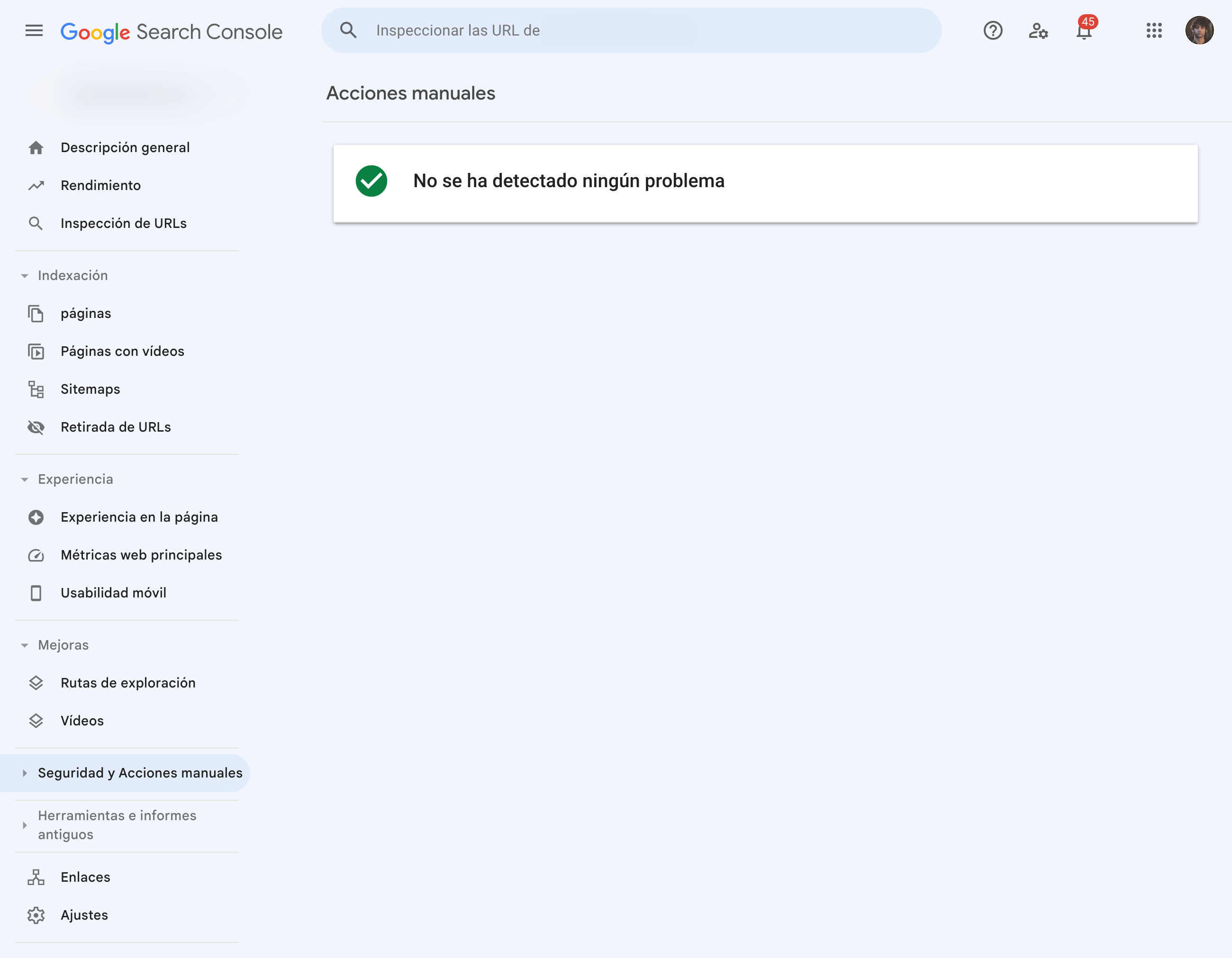 Si se ha producido una acción manual por parte de Google, el webmaster afectado recibirá una notificación al respecto en Google Search Console: