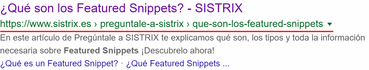 Si se proporcionan migas de pan en forma de datos estructurados, la ruta de navegación correspondiente puede aparecer en el SERP Snippet en lugar de la URL: