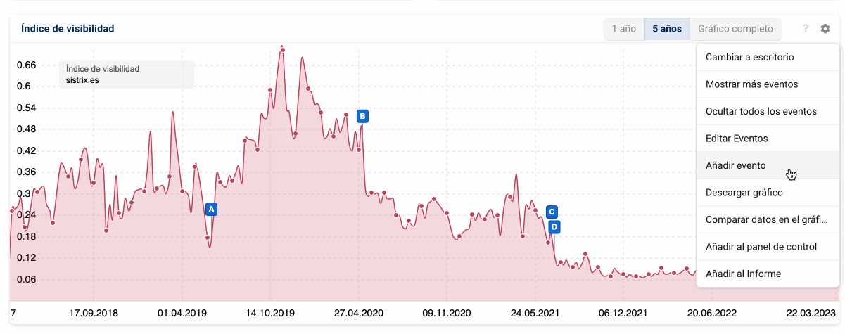 Incluso los gráficos se pueden exportar en diferentes formatos de archivo. Para ello haz clic en el icono de la rueda dentada en la parte superior derecha y luego en «Descargar gráfico». Entonces podrás seleccionar el formato que prefieras: PDF, PNG o CSV.