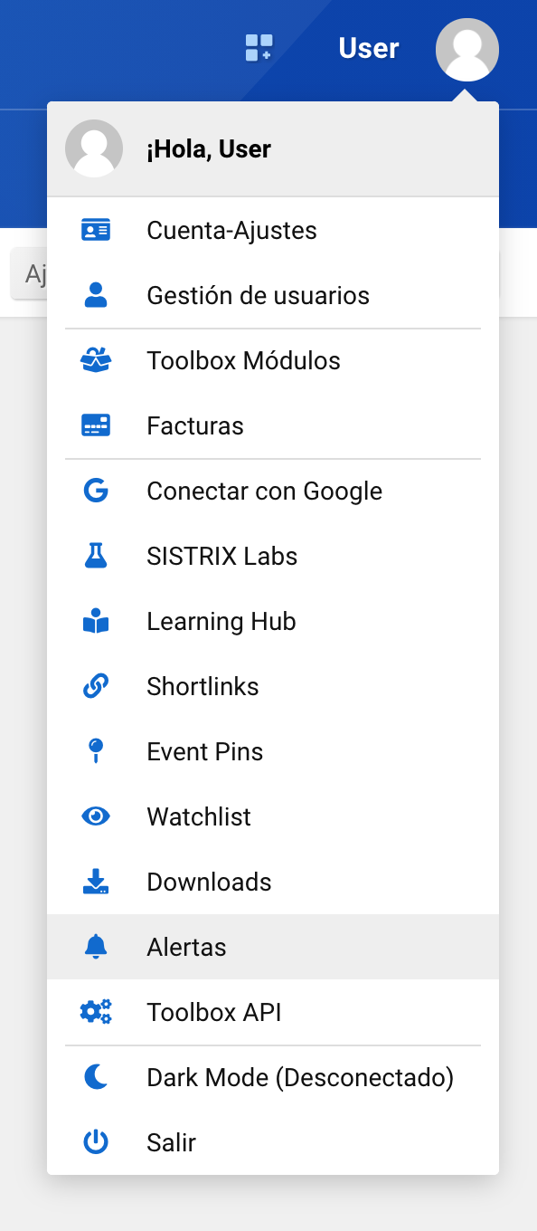 Nuestra herramienta permite a los usuarios crear alertas sobre determinados tipos de cambios y ser informados sobre estos por correo electrónico. Estas funciones son bastante prácticas y diversas. Para llegar a las alertas simplemente dirígete al menú “Mi cuenta“ y elige “Alertas“. Actualmente tenemos cuatro tipos diferentes, cada una con una función determinada.