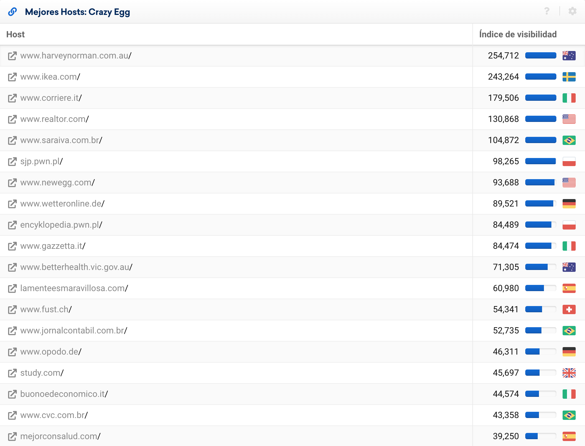 Estos dominios aparecerán ordenados por visibilidad y país, facilitándote la tarea de «prospecting».