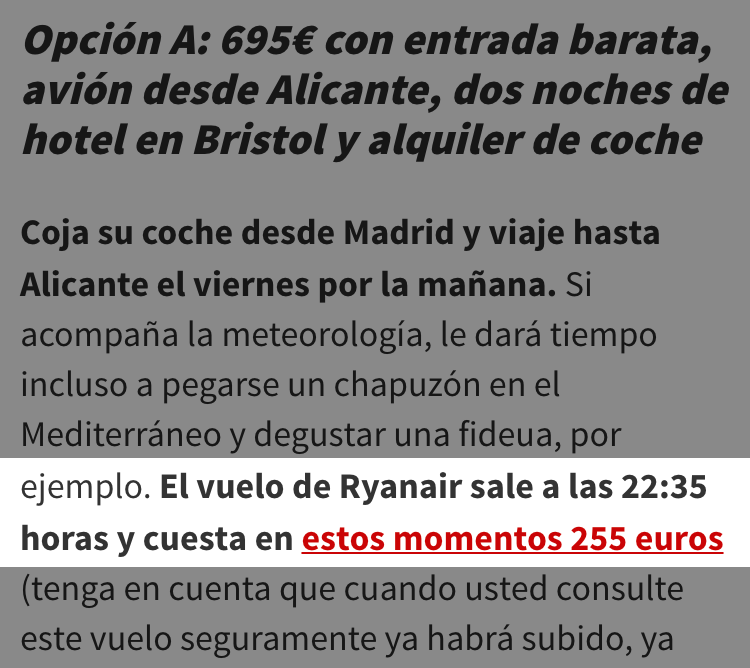 Por su lado, expedia.es ha conseguido un enlace desde un artículo que también parece natural en el que se habla de cómo ahorrar dinero a la hora de reservar un hotel: