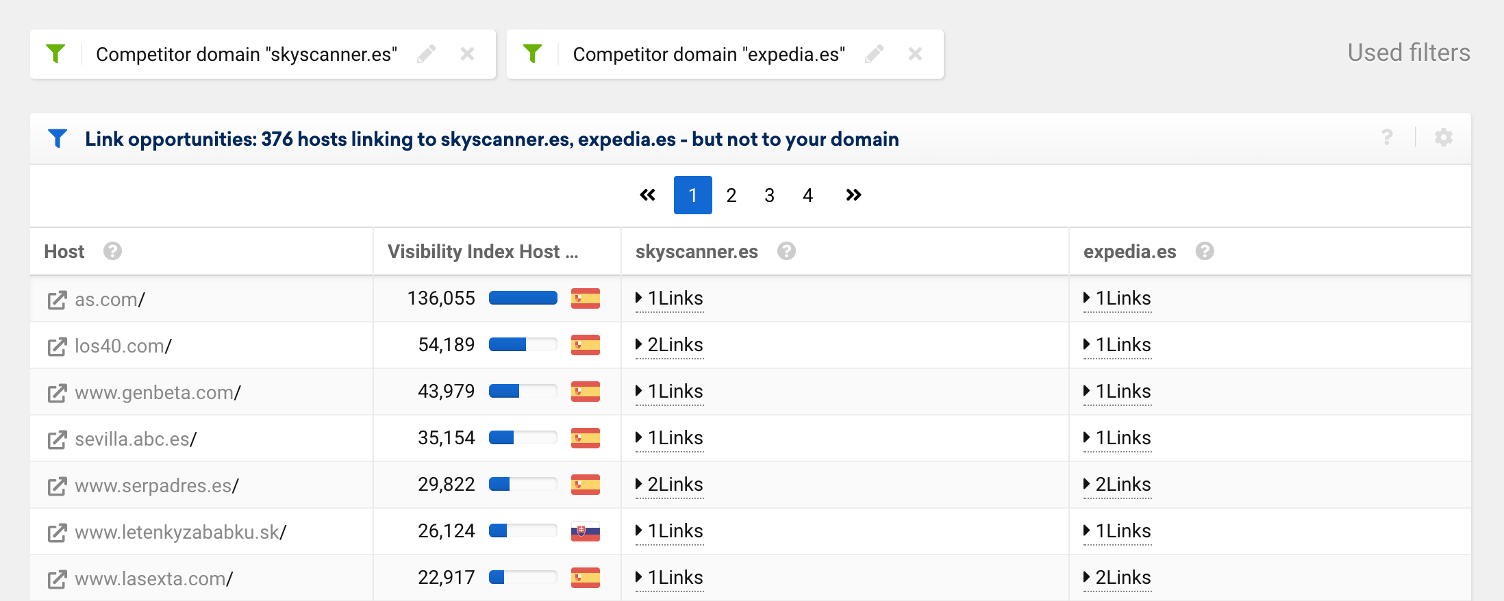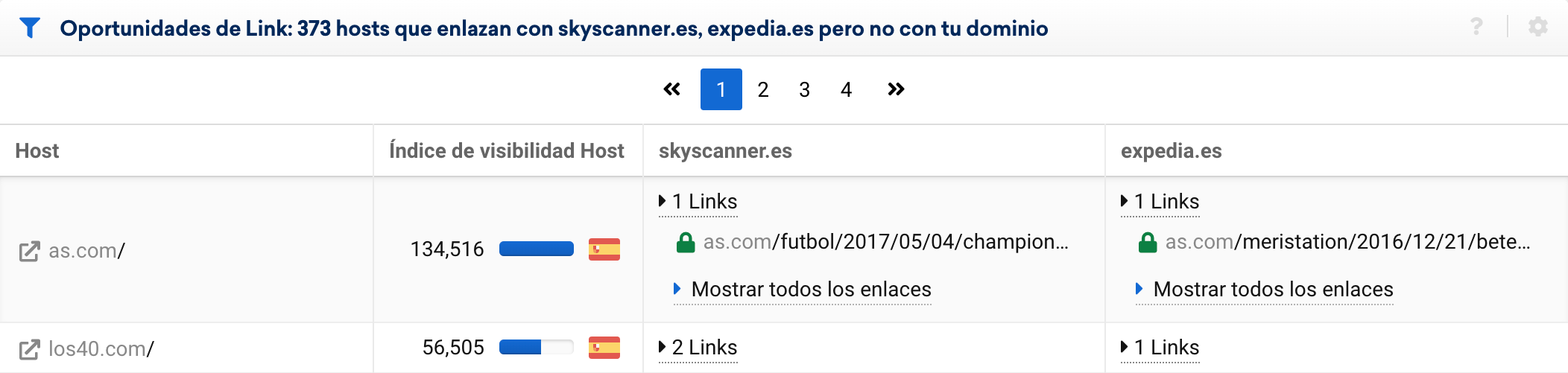 En este informe vamos a ver qué tipo de contenido han creado nuestros competidores para conseguir enlaces de ciertos sitios. En el caso de edreams.es voy a añadir skyscanner.es y expedia.es: