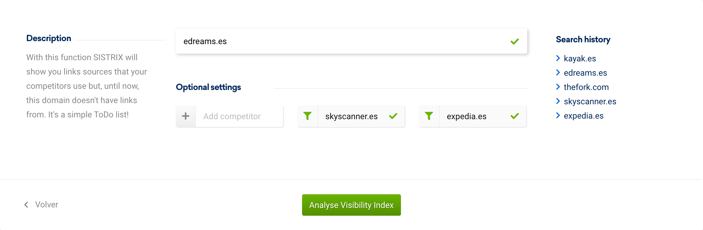 En este tutorial vamos a ver cómo podemos buscar ideas para nuestras campañas de consecución de enlaces.En este caso veremos cómo espiar las estrategias ganadoras de link building de los competidores de edreams.es con el apartado Links de SISTRIX.