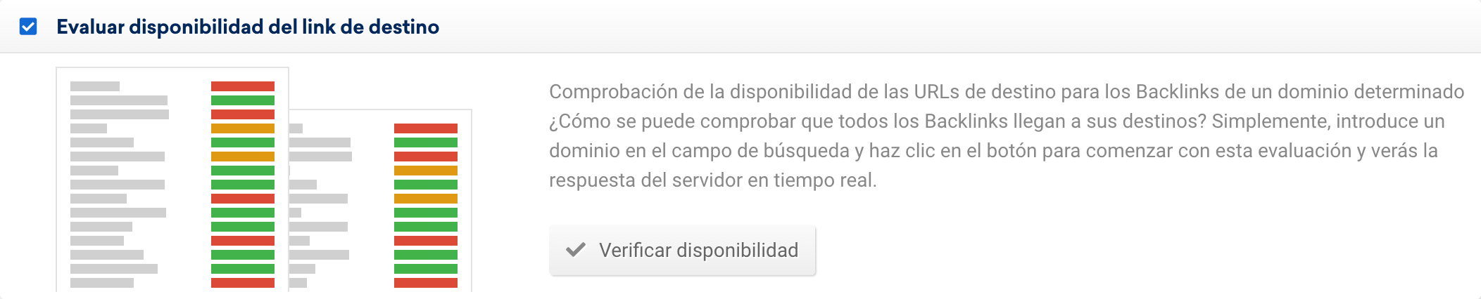 Ésto lo podemos ver en el informe de «Links>  Enlaces rotos». En esta página, pulsamos sobre «Verificar disponibilidad» y esperamos unos segundos: