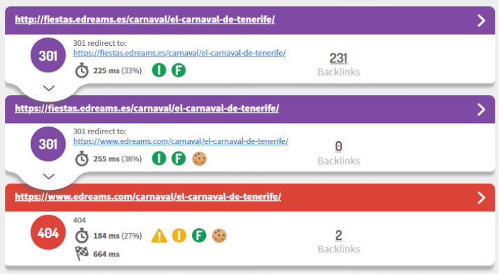 Parece ser que tanto el subdominio «fiestas» como «dreamsguide» están mal migrados y son una fuente de enlaces de calidad hacia edreams.es: