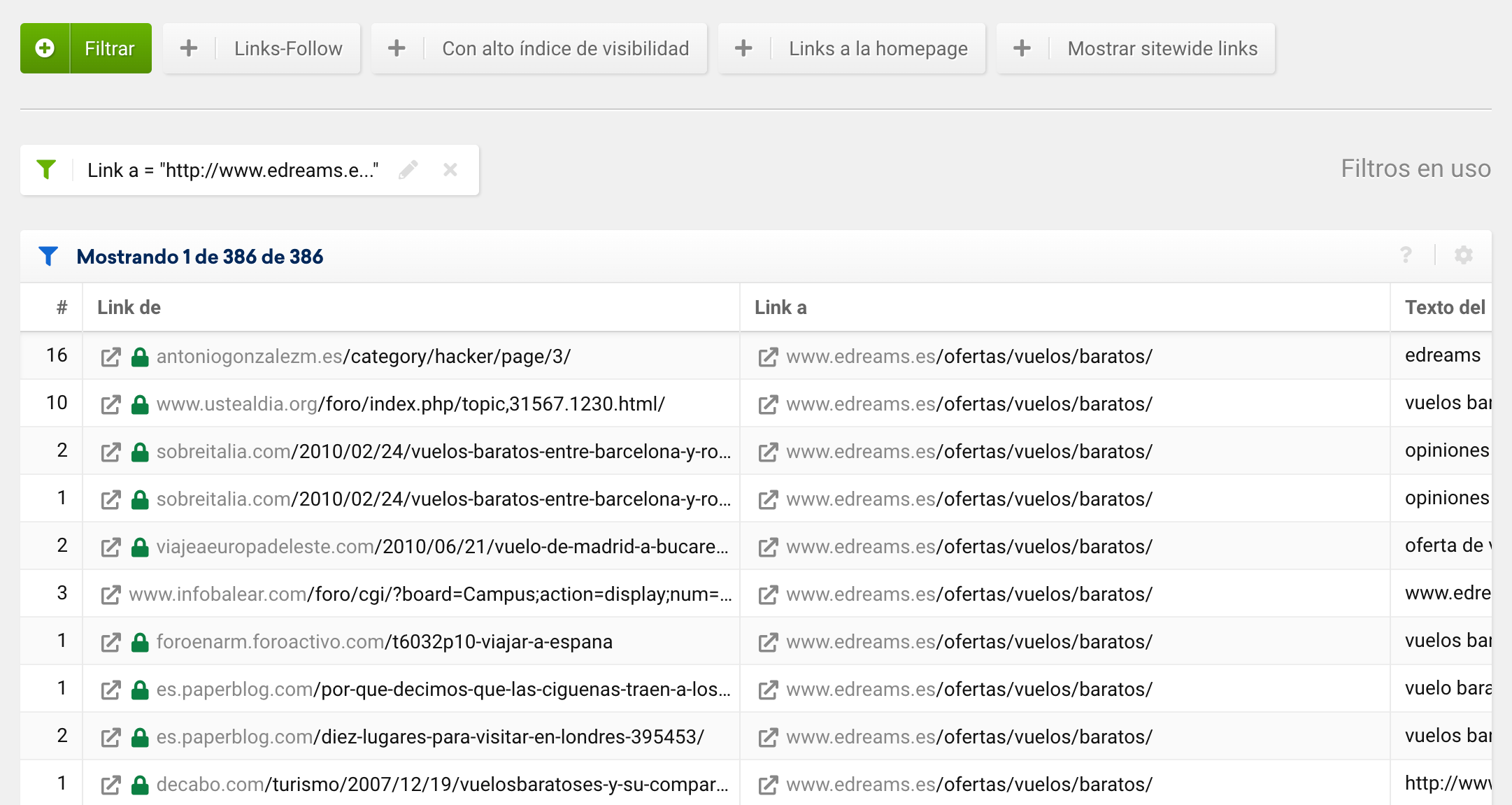 Si vemos una URL con muchos enlaces rotos y en la cual tengamos un contenido similar o que podamos generar, entonces iremos a ver los enlaces para encontrar los orígenes: