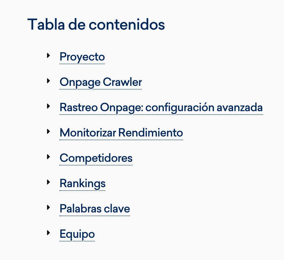Puedes examinar esto con más detalle con las otras funciones de análisis que están a tu disposición en tu proyecto Onpage en el menú de la parte izquierda, en el apartado «Rankings».