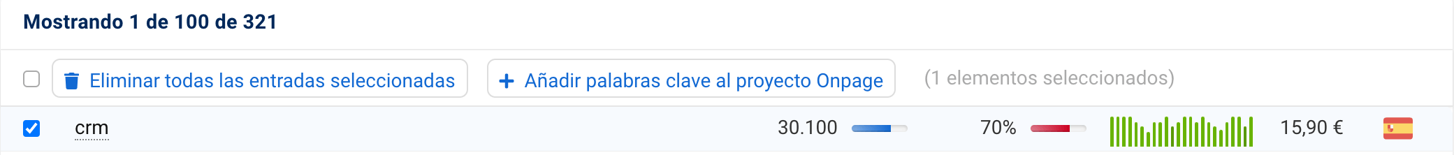 Cuanto mejor sea tu conjunto de palabras clave, más significativo será posteriormente el Índice de Visibilidad de tu proyecto. Un keyword research minucioso al principio dará sus frutos al final.