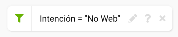 Por defecto, en este apartado, configuramos un filtro que excluye las palabras clave con la intención «Web». Con esto, eliminamos mayormente nombres de marcas, casi siempre extranjeras, dado que en la mayoría de los casos, las posiciones para estas palabras clave no traen ni visitantes ni ventas. Por supuesto, puedes desactivar el filtro en cualquier momento haciendo clic en la «X».