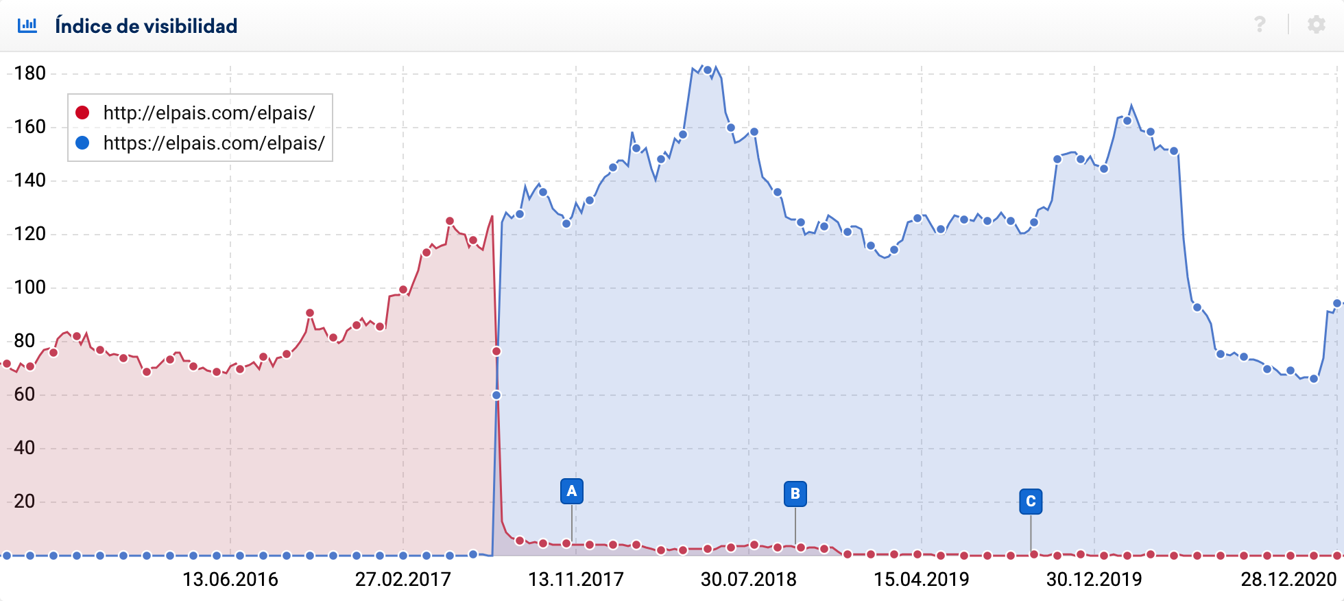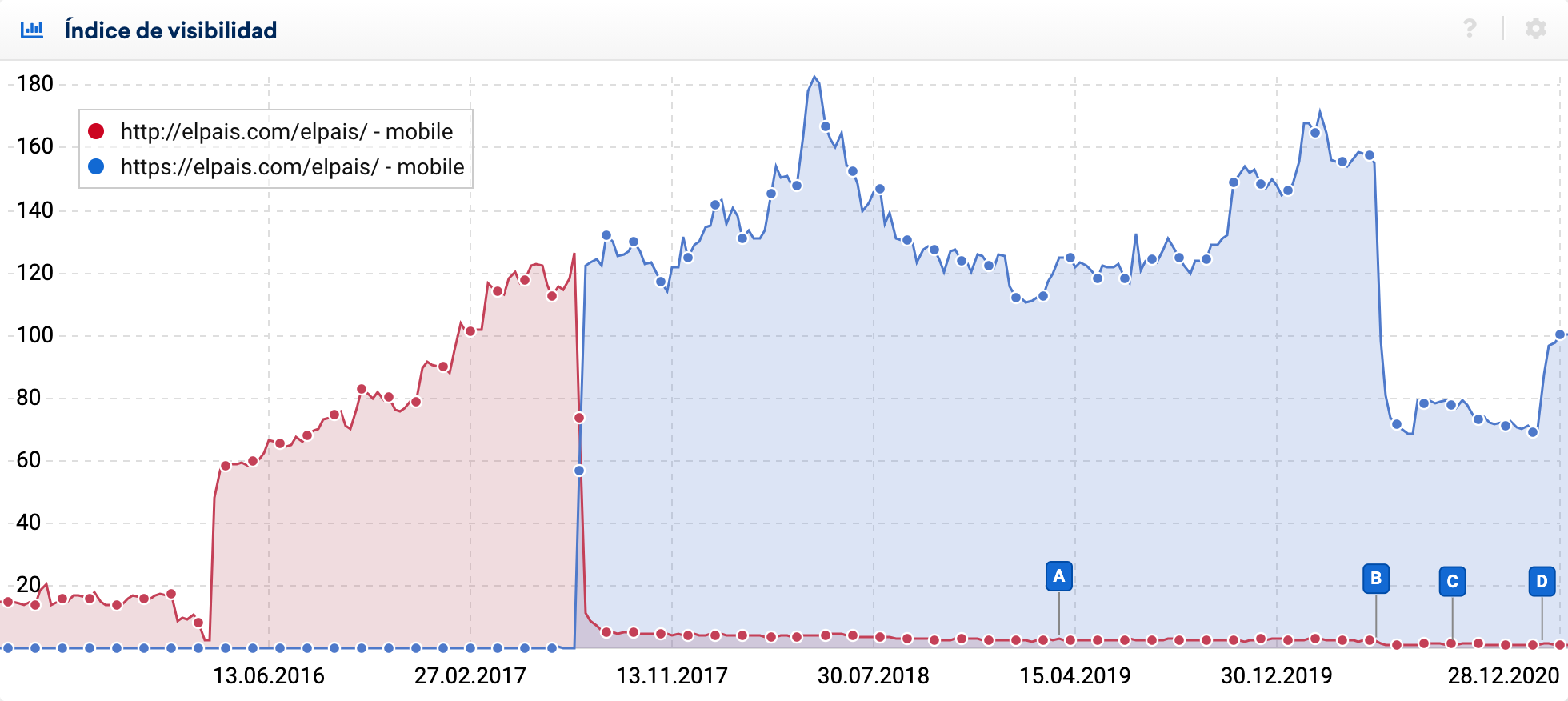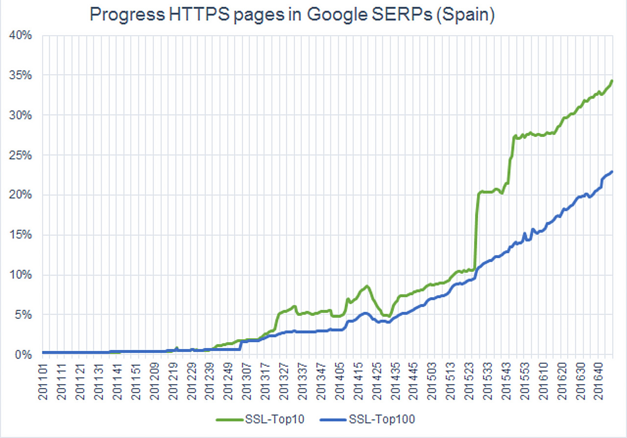 Por ejemplo, a finales del 2016, casi el 35% de los resultados en el top 100 en «google.es» ya estaban formados por páginas HTTPS: