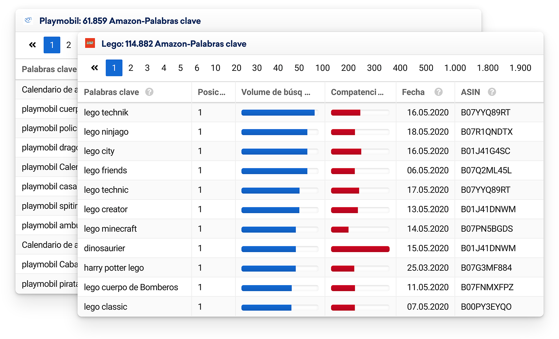Encuentra miles de ideas para nuevas palabras clave analizando su volumen de búsqueda en Amazon. Evalúa a tu competencia según sus palabras clave.