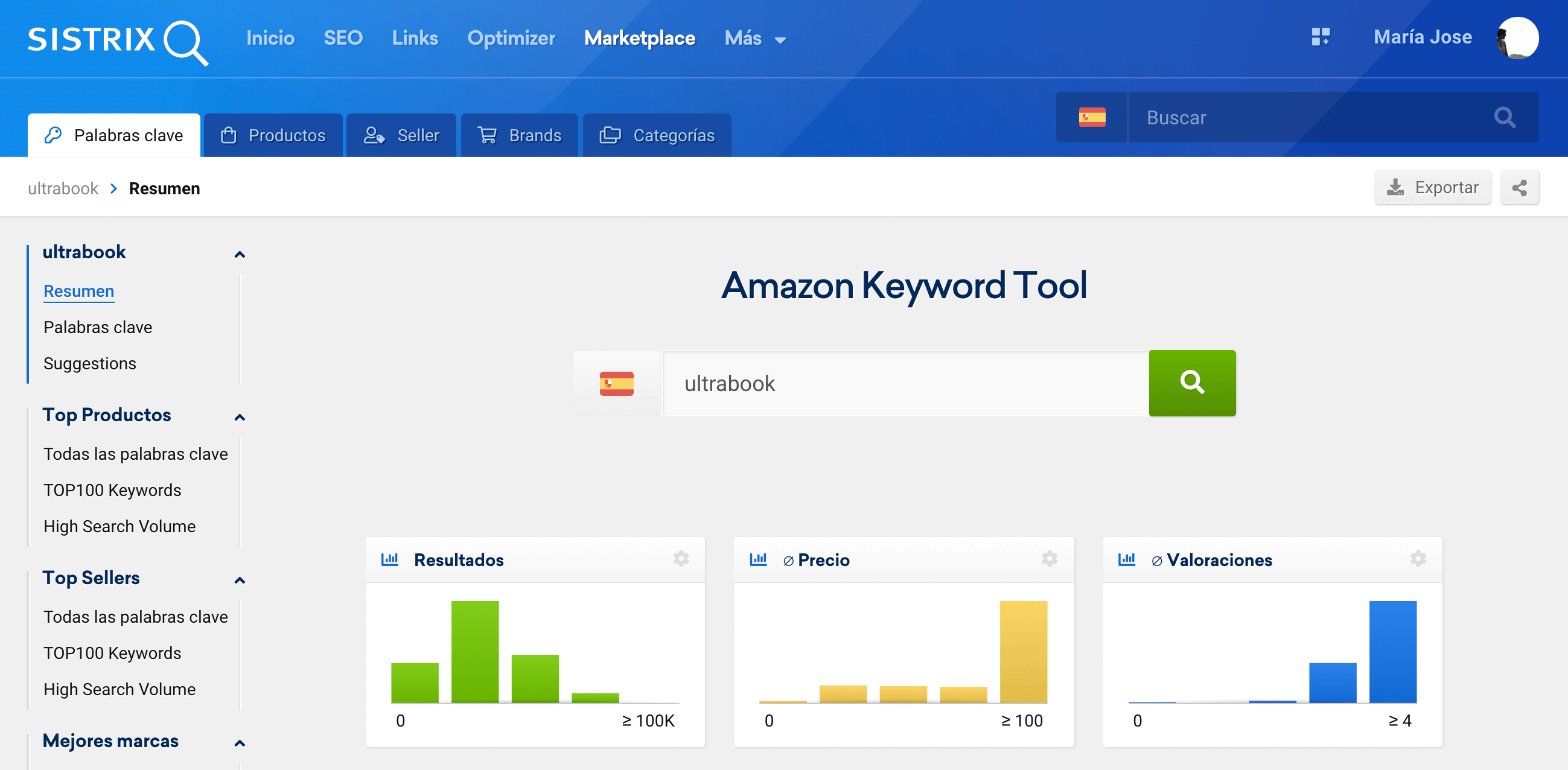Seleccionar las palabras clave adecuadas es el primer paso hacia el éxito en Amazon. SISTRIX te ayudará con esta tarea: simplemente introduce una idea de palabra clave, y te mostraremos miles de otras ideas en cuestión de segundos.