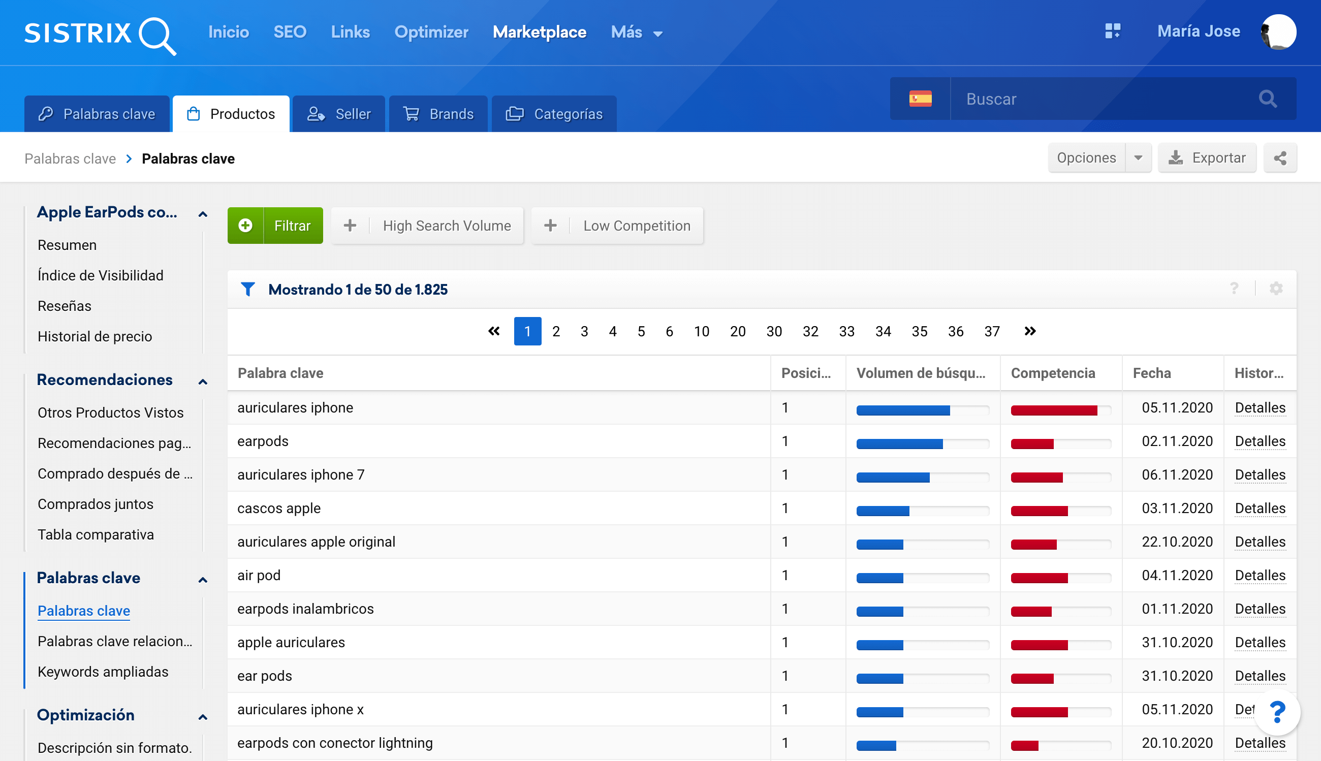 Encuentra miles de nuevas ideas de palabras clave, analiza el volumen de búsqueda en Amazon. Evalúa a tus competidores en función de las palabras clave.