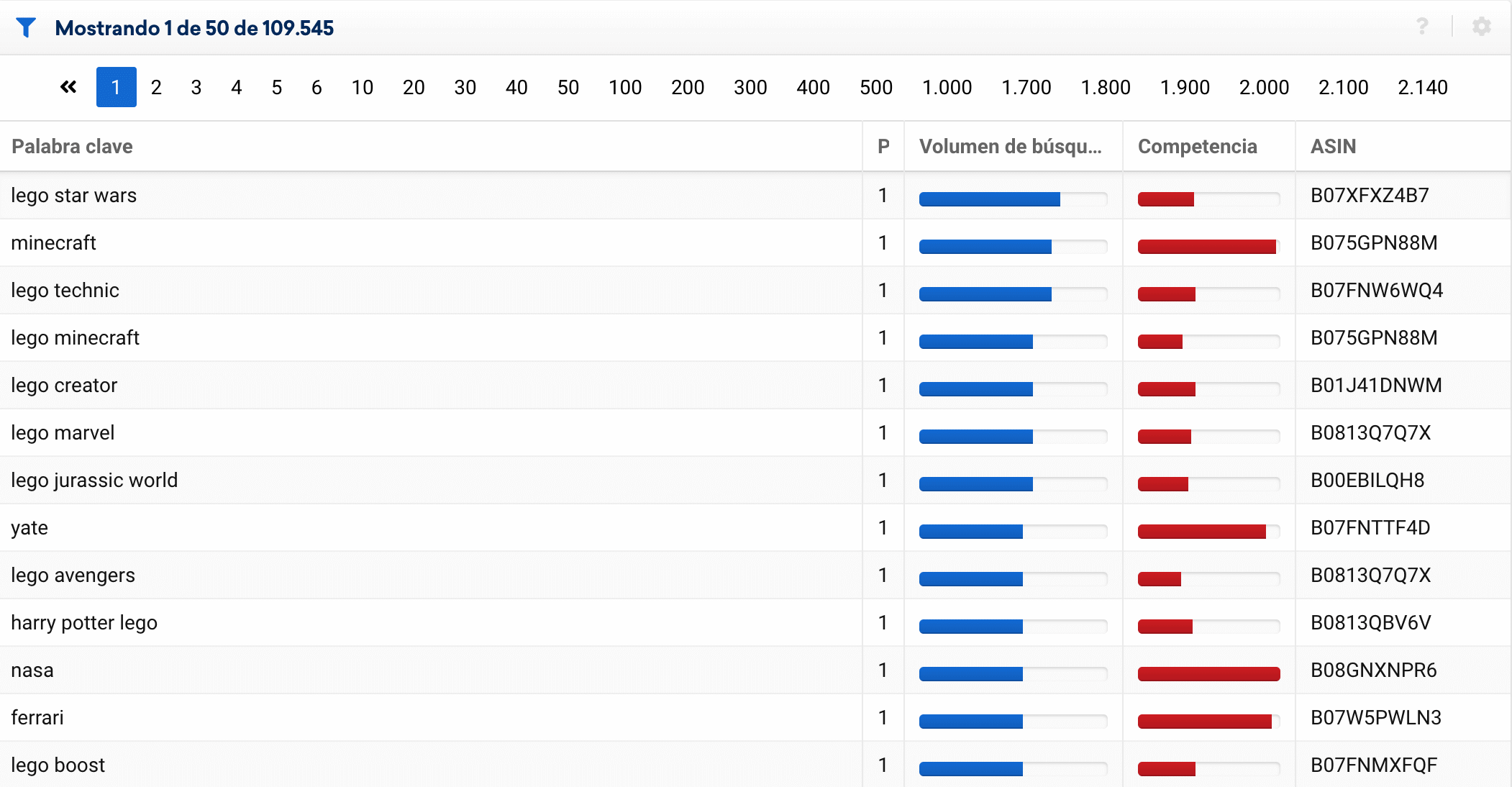 Simplemente introduciendo el ASIN, la marca o el nombre del vendedor, te mostraremos las palabras clave (ordenadas por volumen de búsqueda y posicionamiento) con las que te encuentran en la búsqueda de Amazon.