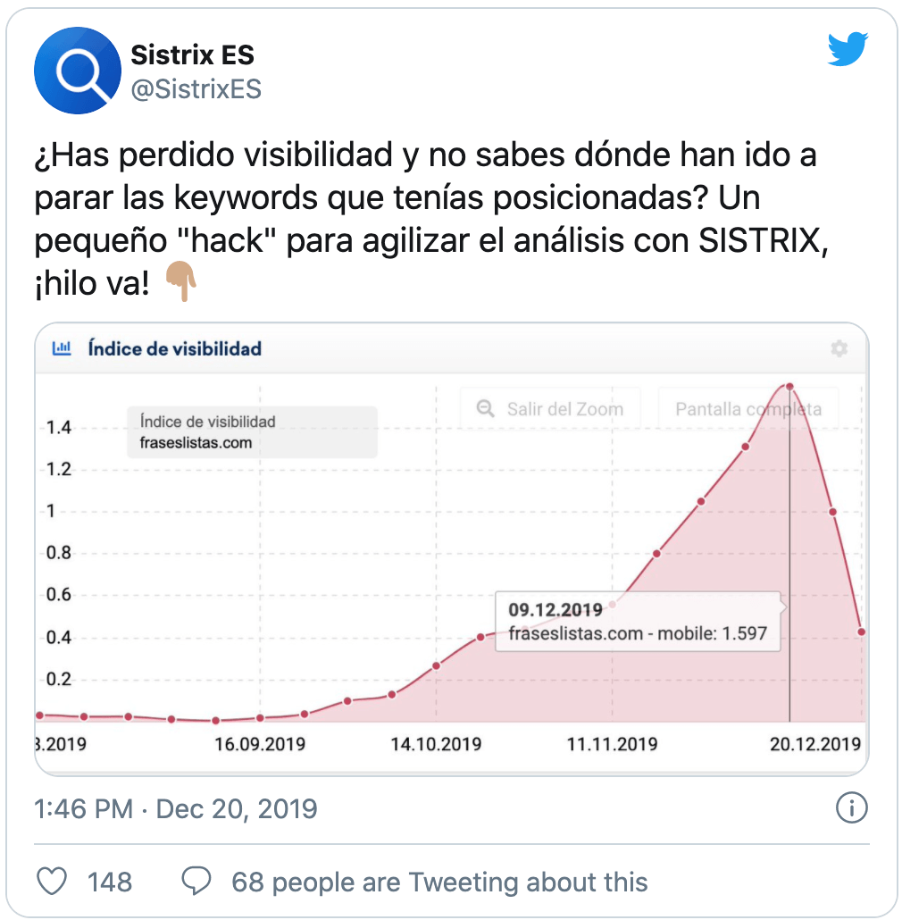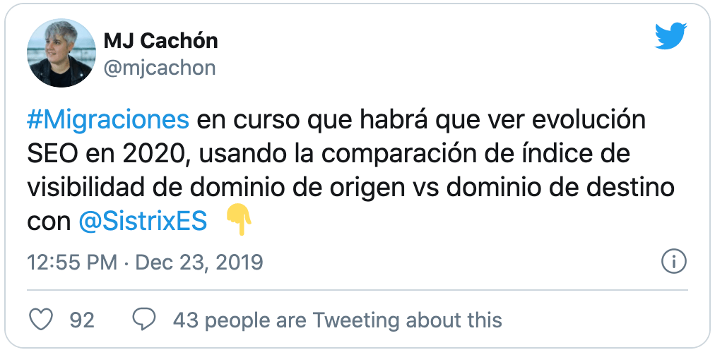 Otro aspecto que puede ayudar a identificar si la migración ha salido bien o no es usar la lista de palabras clave principales del proyecto de origen y usar una lista para ver quién está posicionando por las palabras clave, algo que explicamos en Twitter no hace mucho tiempo: