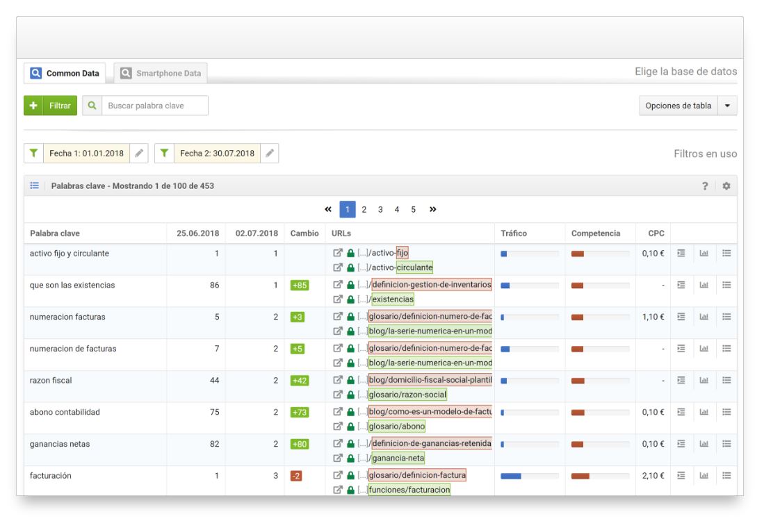 En la actualidad, Debitoor dispone ya de 4120 palabras clave posicionadas en el Top-100 de Google, de las cuales 1173 ya posicionan en primera página (28% del total).