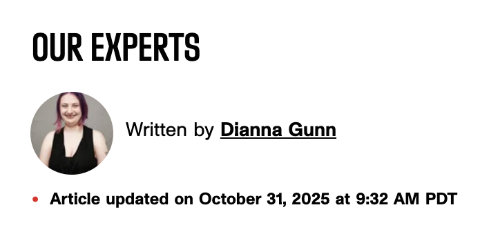 - Incluye autores visibles, expertos (por ejemplo, «Revisado médicamente por…», «Experto en…») y una fecha clara de «Última actualización…».