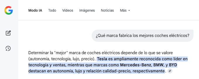 - Moldeas activamente la respuesta de la IA: este es el punto más importante. Si consigues una citation, tus datos, tus hechos y tus guías se convierten en la base del texto que genera la IA. De este modo, influyes directamente en el contenido que los usuarios ven en primer lugar. Si tu página ofrece los mejores consejos para perder peso, hay muchas posibilidades de que la respuesta de la IA refleje exactamente esos consejos.
