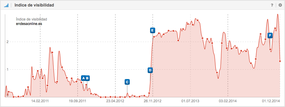 Todo esto es sólo un fragmento de la situación total. En realidad ese “cruce de cables“ afecta a otros dominios de Endesa, como por ejemplo, endesa.com. Un consejo importante: un cambio de visibilidad tan variable, es un indicio de contenido duplicado que debería comprobarse y corregirse.