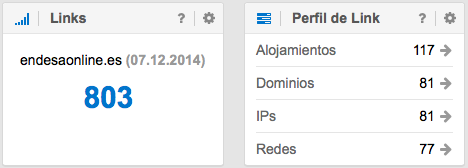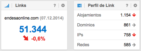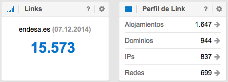 Para poder observar esta perdida, hay que ir en nuestra herramienta SISTRIX a «Links > Resumen» y pulsar en la superficie central sobre al aviso “Permitir LinkPlus para este Dominio ahora“. Después de esperar unos 10 minutos (dependiendo del la cola de espera) aparecerán datos que impresionarán a cualquiera y estos son los resultados para los enlaces de los 3 dominios de Endesa: