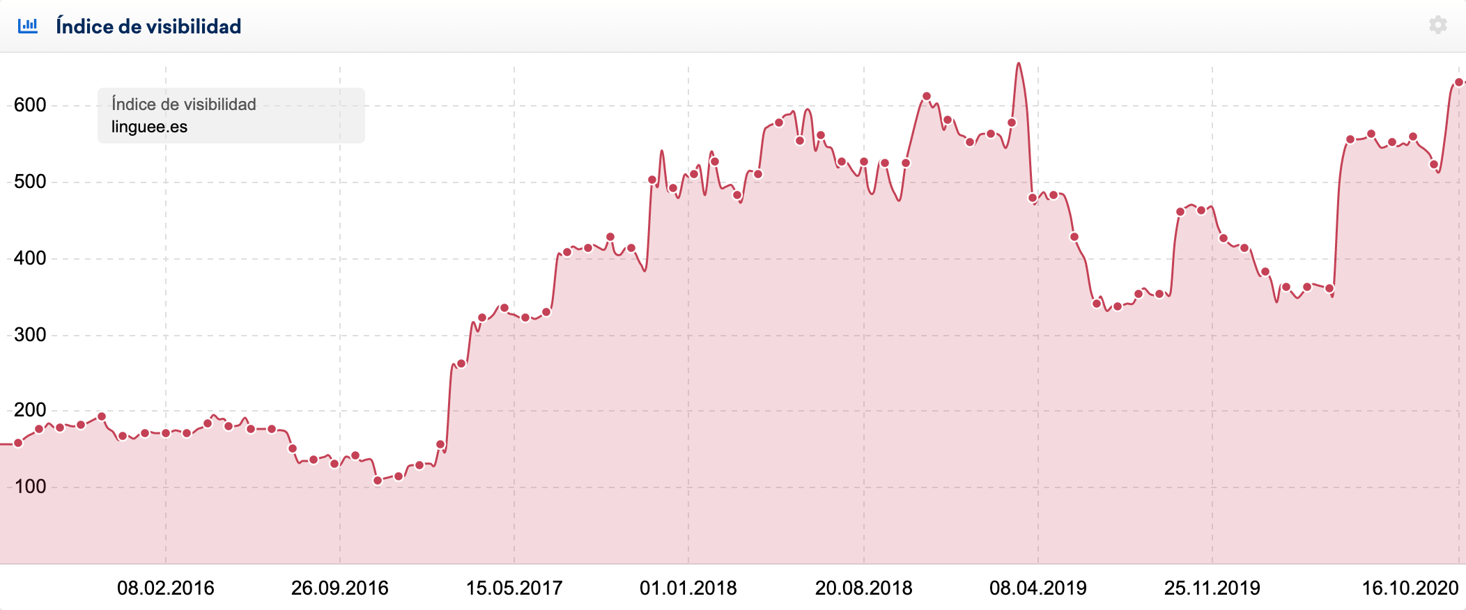 Se trata de una evolución interesante ya que, en los últimos años, numerosos sitios de diccionarios y vocabulario han tenido un aumento exponencial de visibilidad dentro de las páginas de resultados. Por ejemplo, linguee.es es actualmente el décimo sitio más grande de España (en visibilidad), incluso más alto que sitios como booking.com.
