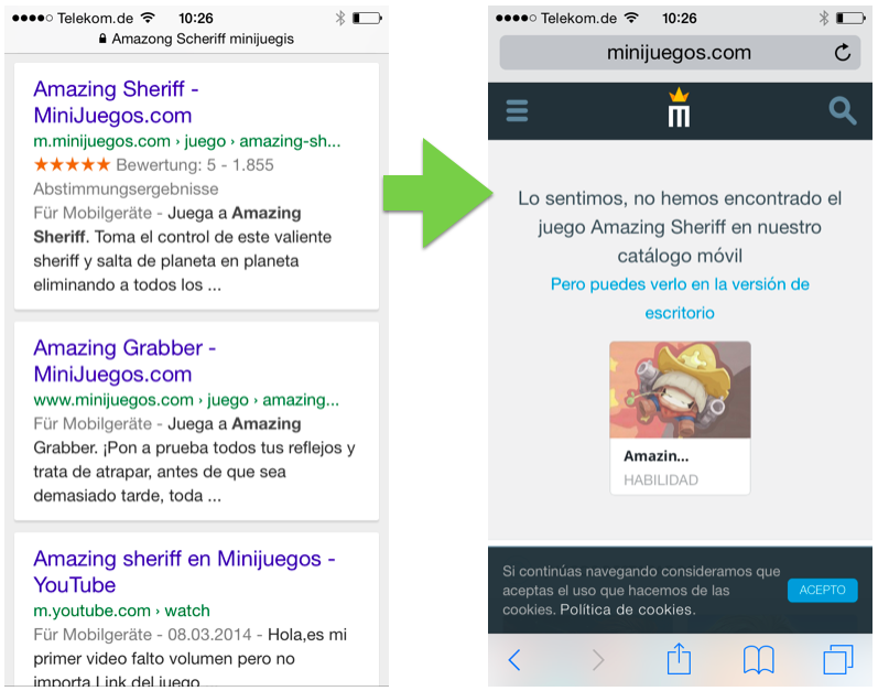 Así como en el ejemplo anterior, los contenidos disponibles para Desktop, también deberían estar disponibles en su versión móvil, en muchos casos, estos contenidos no están disponibles y el usuario recibe un código de estado Error-404 en lugar de la información que estaba buscando.
