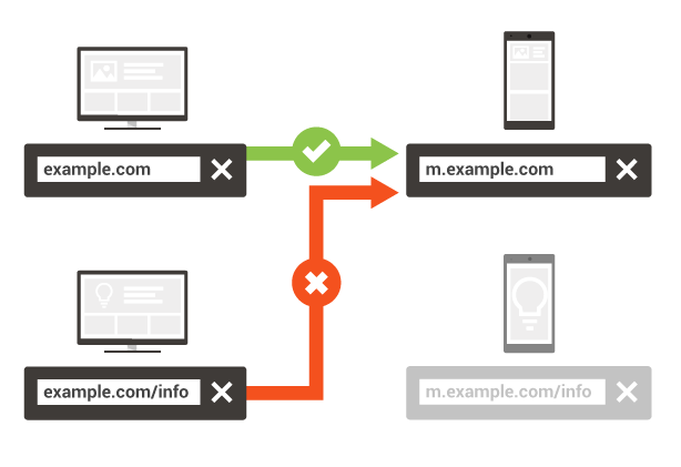 Así como lo describe Google, redireccionar un contenido inexistente para móvil a la página de inicio de la versión móvil, es uns «Error 404 leve» (Soft-404).