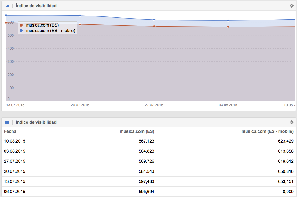Desde el año 2008 (2010 para España) medimos la visibilidad de los dominios en Google, por así decirlo, la cuota de mercado de un dominio en Google, a través de él revolucionamos hace 7 años el mundo SEO. Por primera vez fue posible medir los efectos de las medidas SEO adoptadas para cualquier dominio, igualmente los efectos provocados por los cambios del algoritmo de Google (Panda, Pinguin, etc.) y por último, el análisis directo de la competencia. Igual que hace 7 años, hoy volvemos a ser la primera herramienta SEO en ofrecer un índice de visibilidad para móviles.