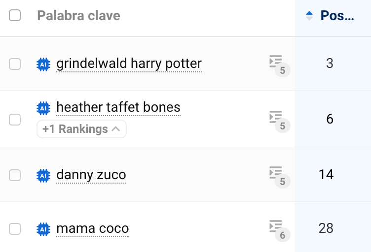 Con el fin de reconocer rápidamente las palabras clave para las que Google mostrará su propio contenido de IA en los próximos meses, desde esta semana las marcamos en SISTRIX y mostramos un pequeño icono, a la izquierda de cada palabra clave, en las tablas de palabras clave posicionadas.