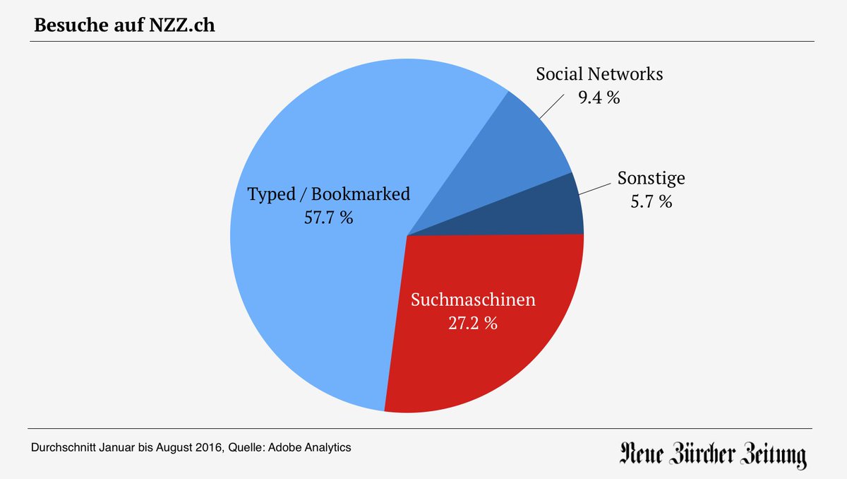 En caso de que estés interesado en obtener más datos de tráfico de diarios europeos, haciendo uso del hashtag #TrafficLeaks en Twitter, encontrarás los datos publicados por algunos medios de Austria, Alemania y Suiza. Aquí tenemos, por ejemplo, las fuentes de tráfico de uno de los diarios más grandes en alemán, Zeit.de: