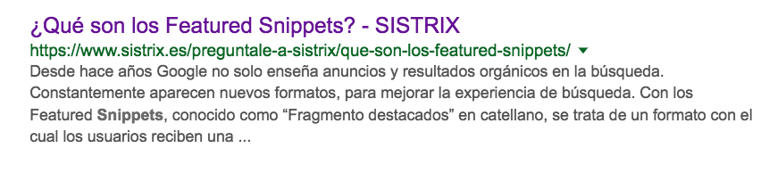 El Snippet de texto se encuentra junto al título para convencer a los usuarios de que hagan clic en dicho resultado de búsqueda. Aquí tenías dos líneas de espacio. En comparación con Searchengineland, Google confirma ahora que suavizará este límite y permitirá textos más largos (traducción hecha por nosotros):