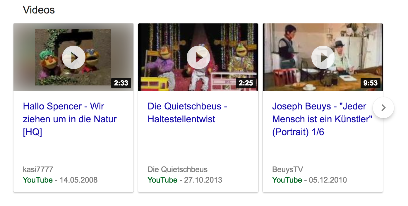 Google lo hace de tal manera, que los vídeos que se posicionaron orgánicamente hasta ahora en el Top-100, quedan reunidos en este carrusel. Además de una imagen de vista previa, también puedes ver directamente la plataforma y más información.